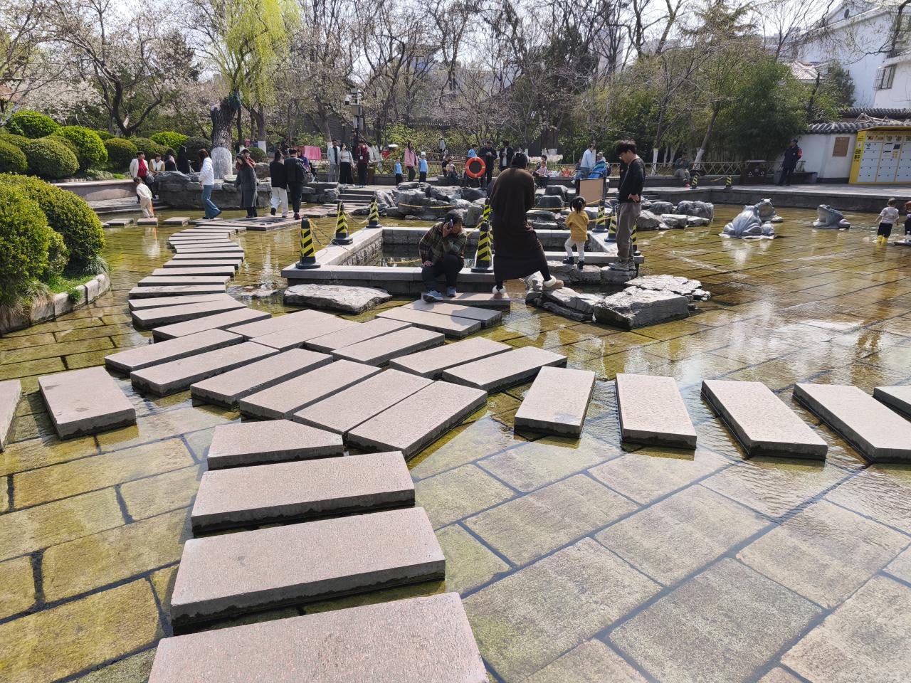 湖面にタイルが張られていて歩くことができる。子供にとっては楽しそう。