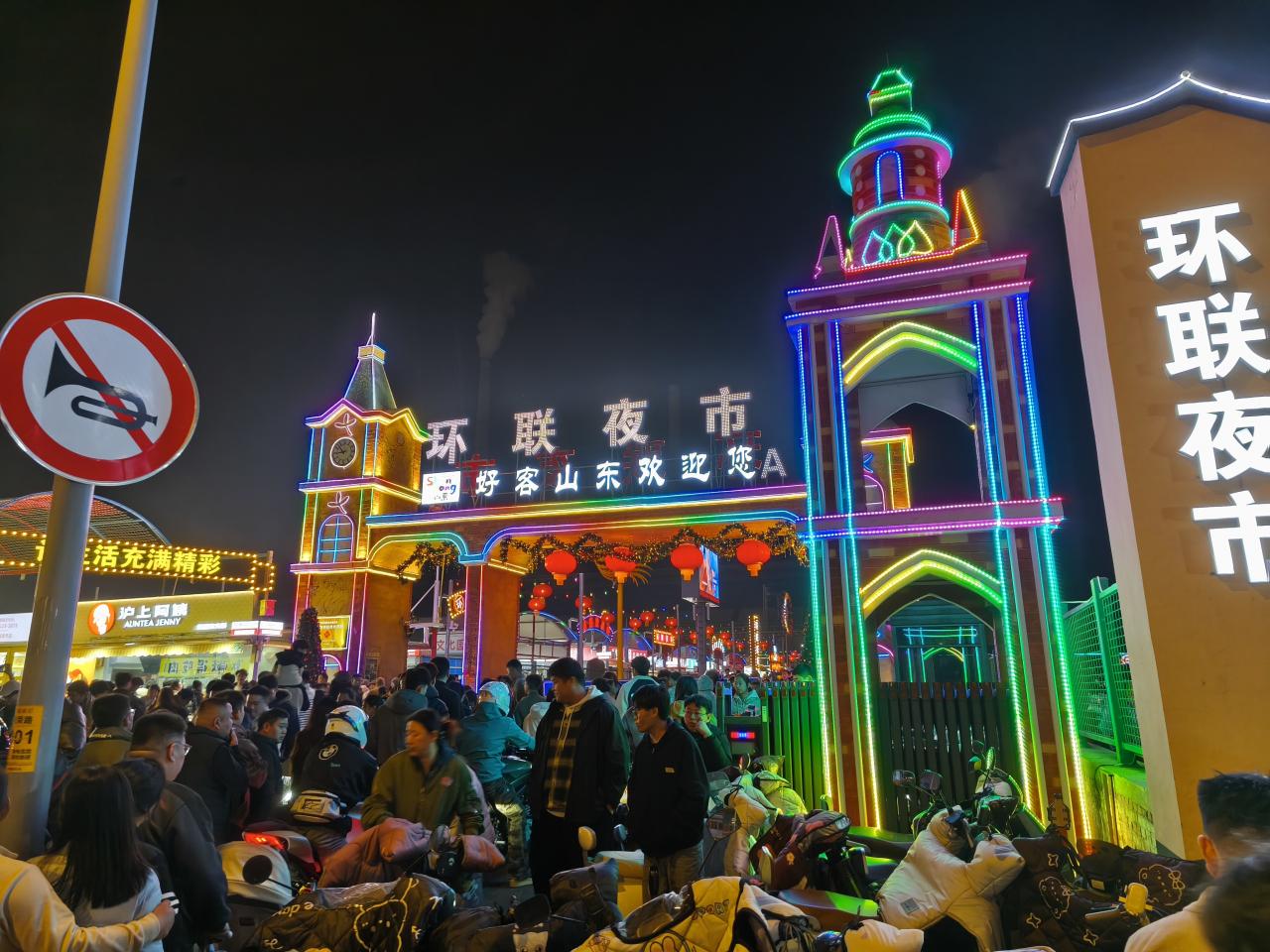 「環聯夜市」の入り口。多くの人でにぎわっている。