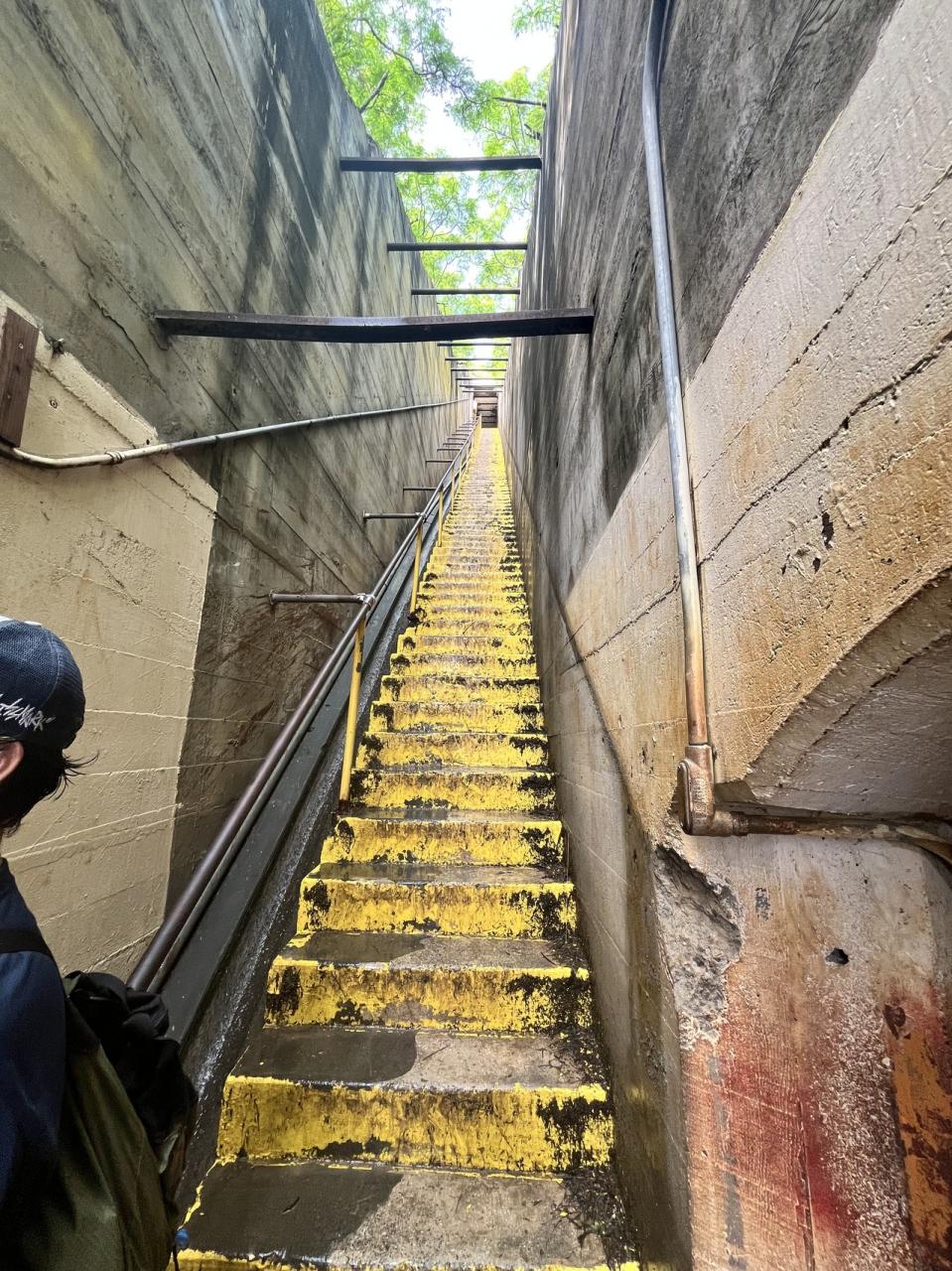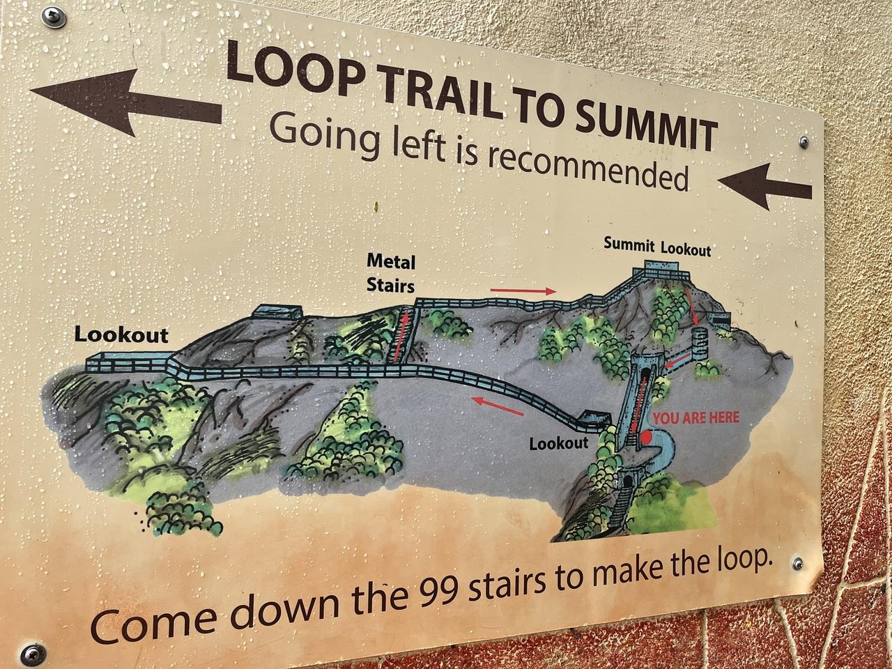 私たちは迂回する道を選びましたが近道の階段もあるよ、の案内(多分)