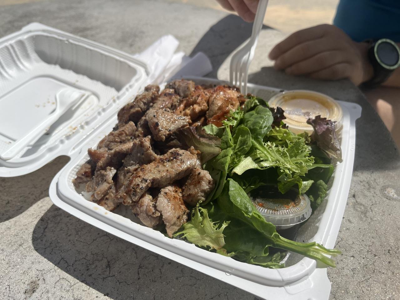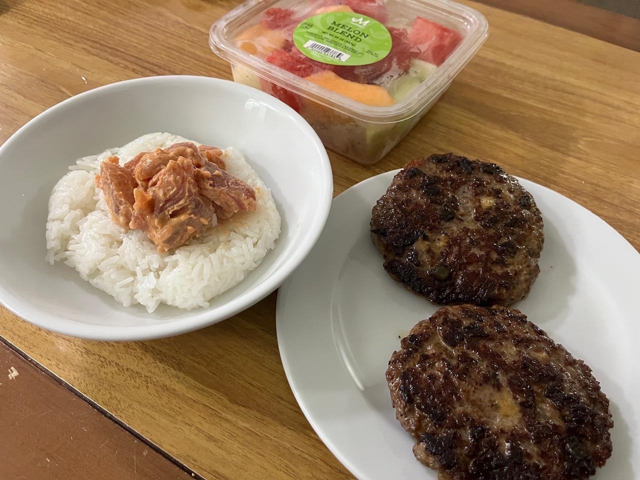 ワイキキマーケットで買ったポキをのせて
