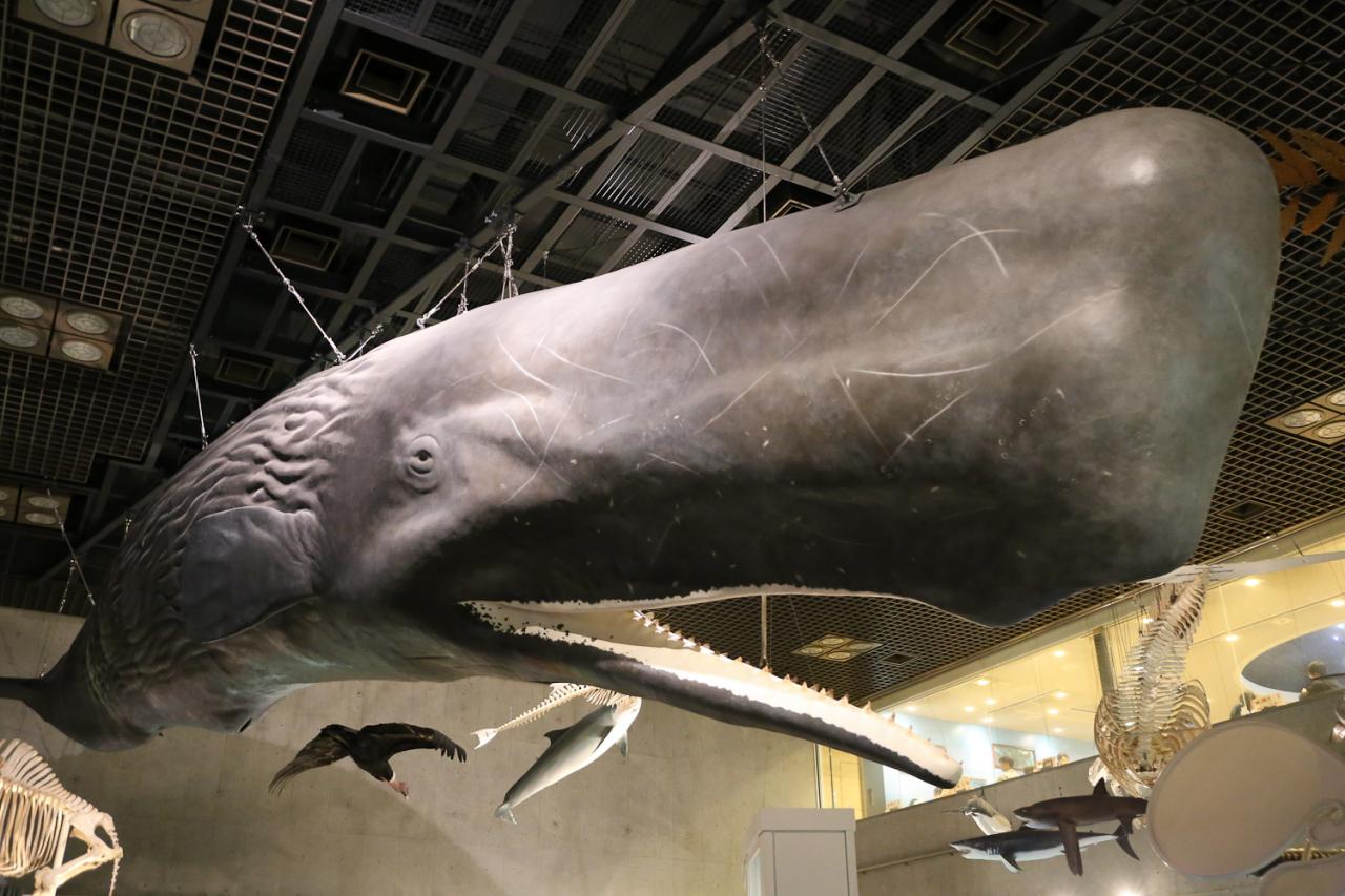 そろそろ退出しましょう。くじらが泳いでいる。
