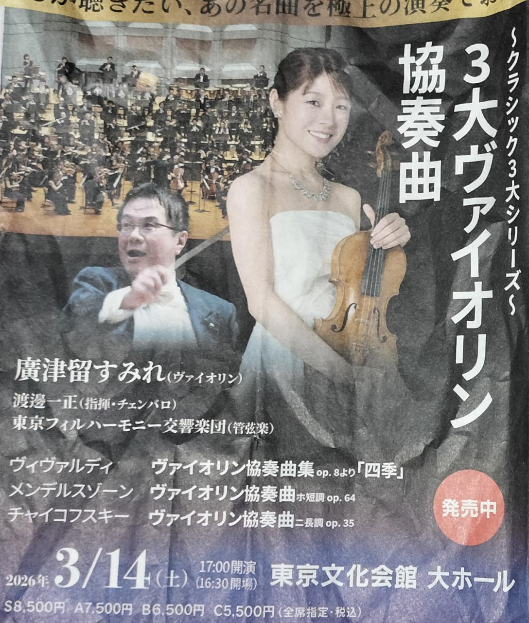 ソリストは廣都留すみれさん、管弦楽は東京フィルハーモニー交響楽団。 -
