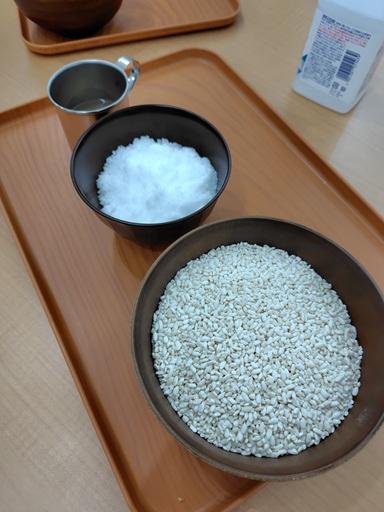 大豆(蒸してあってホカホカ~♪)に米麹・塩・そして発酵水(って言ってたかな~?) -
