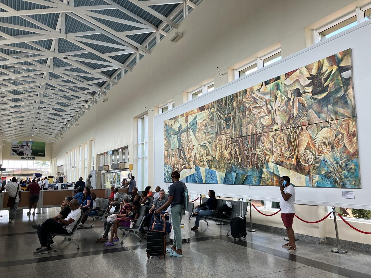 トリニダード・トバゴのピアルコ国際空港に到着しました。飛行機を降りて歩いて入国審査へ向かいます。Piarco International Airport