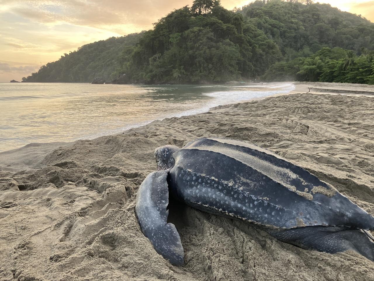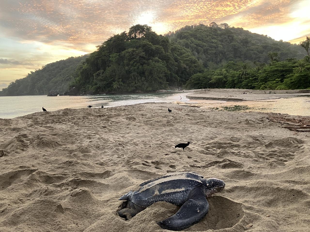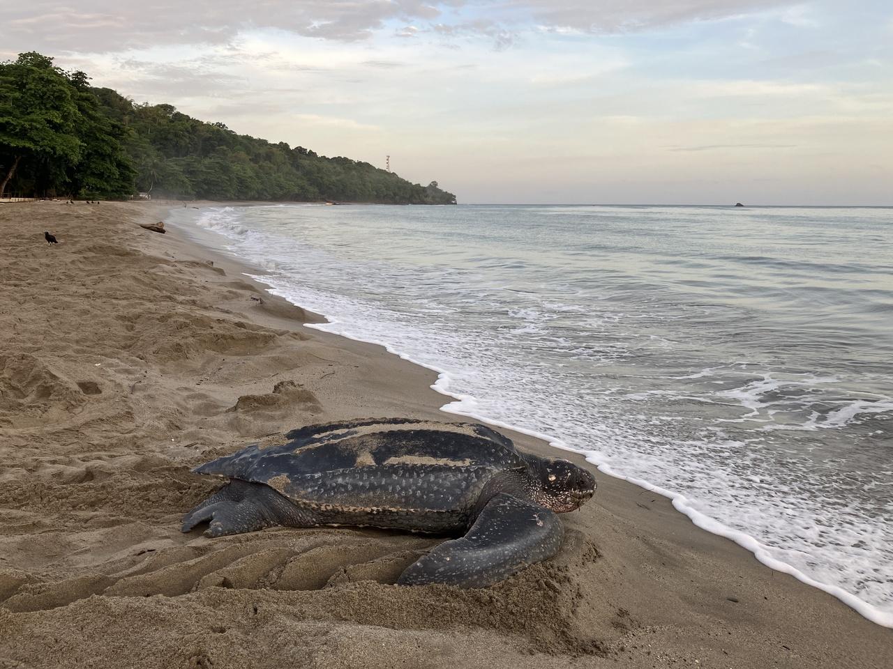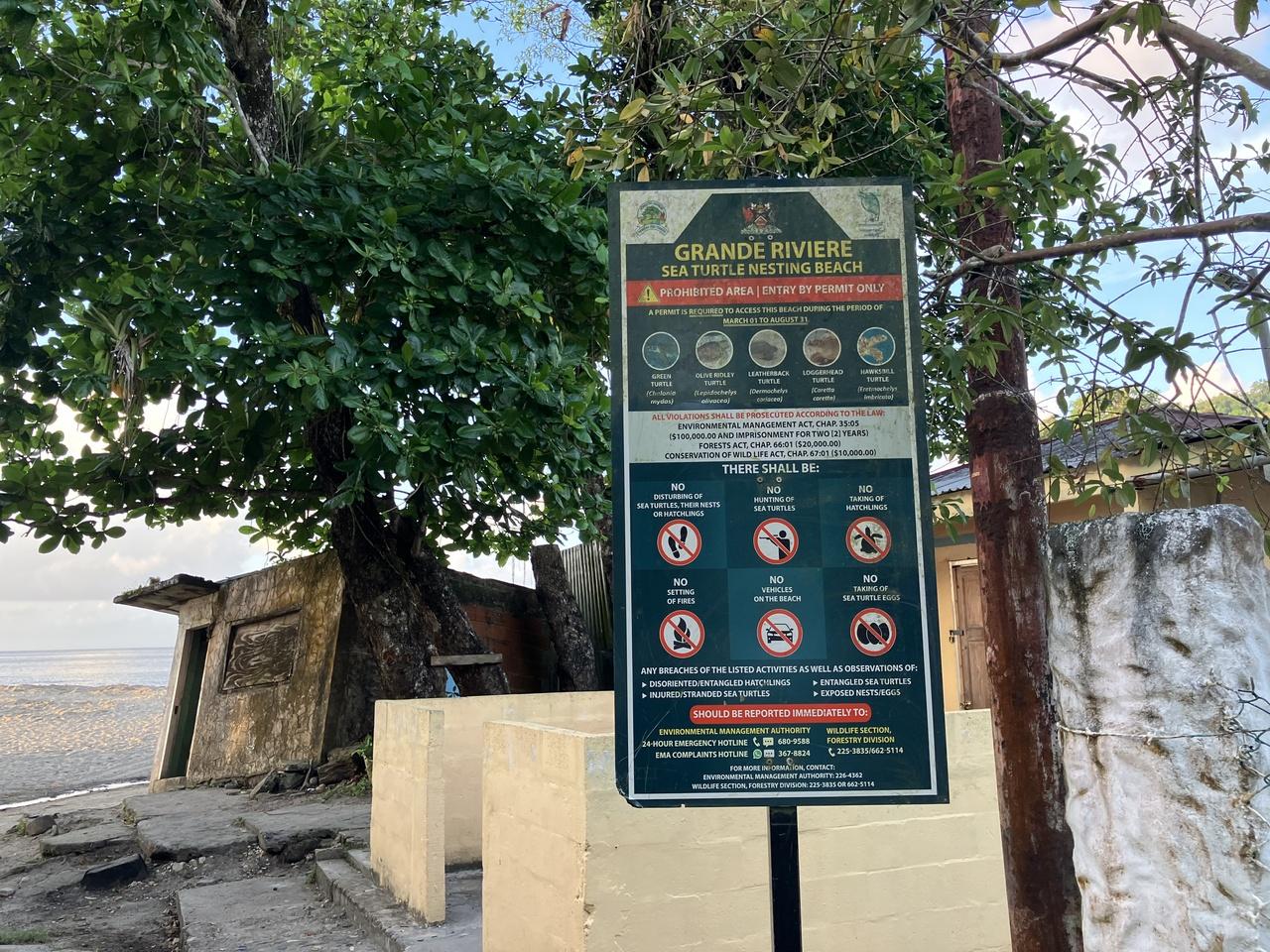 ホテルのすぐ前が海岸になっており、オサガメが産卵をしにやってきます。保護区のため、決められた時間外は海岸への立ち入りも禁止です。禁止事項もいろいろ書かれています。産卵シーズン中の見られる確率は100%と言っていました。