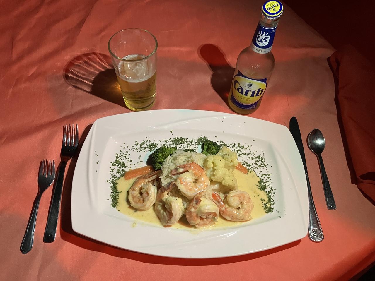 夕食はエビです。少しお高かったですが、こんなところで好物が食べられて幸せでした。