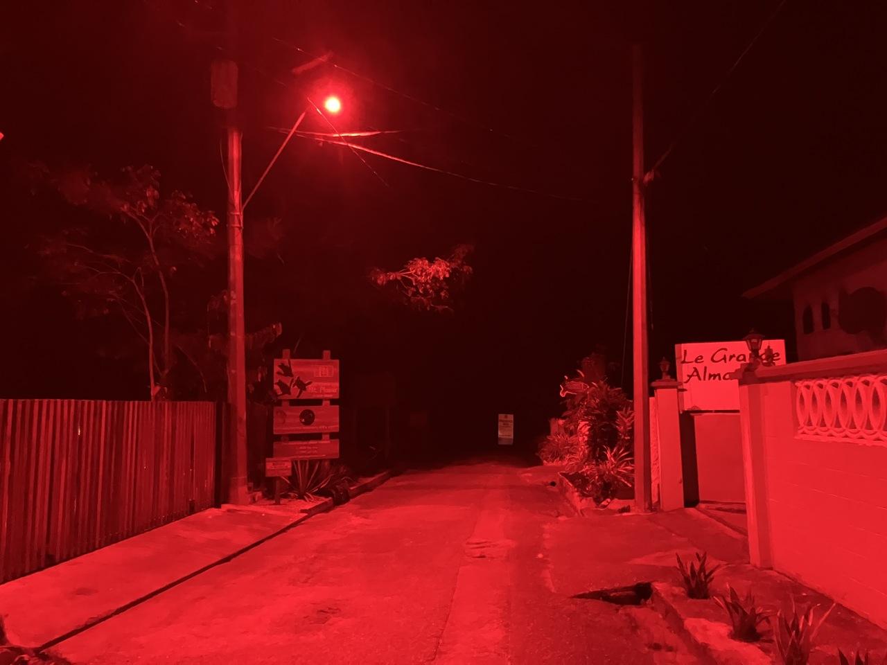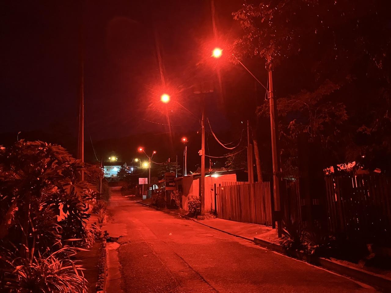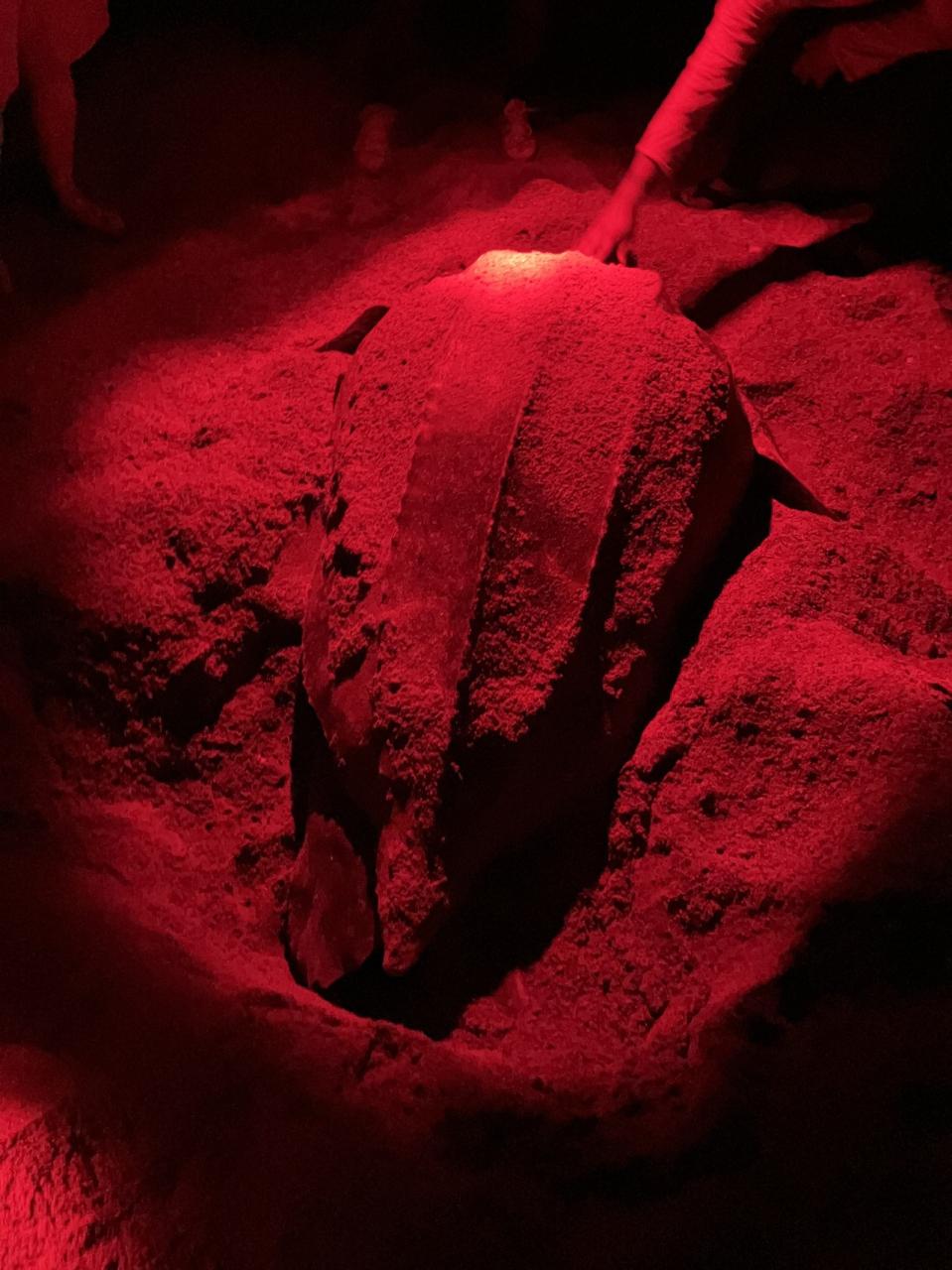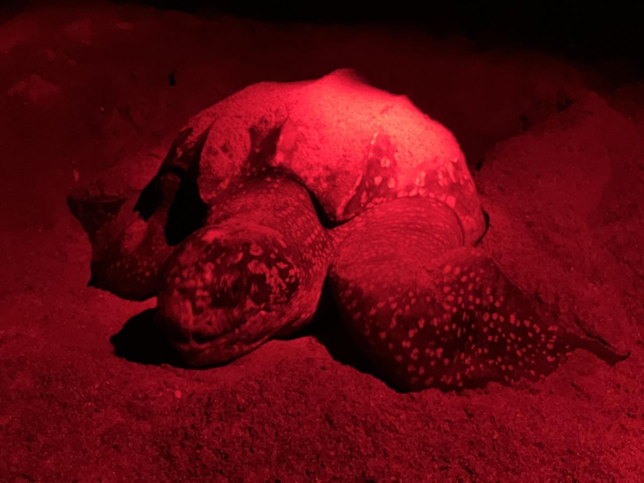 夕方から村の電気が赤くなっていますが、これもオサガメの産卵の邪魔にならないようにです。カメは赤い光を認識しにくいそうです。