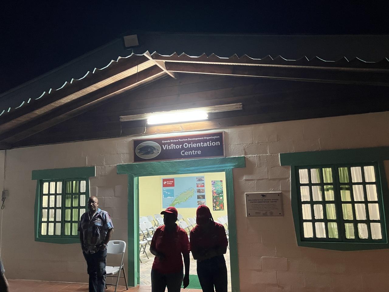 夜のオサガメの産卵ツアーに参加しました。オリエンテーションセンターに集合し、専用のガイドが海岸を案内してくれます。ここは海岸から少し離れているので白いライトでした。
