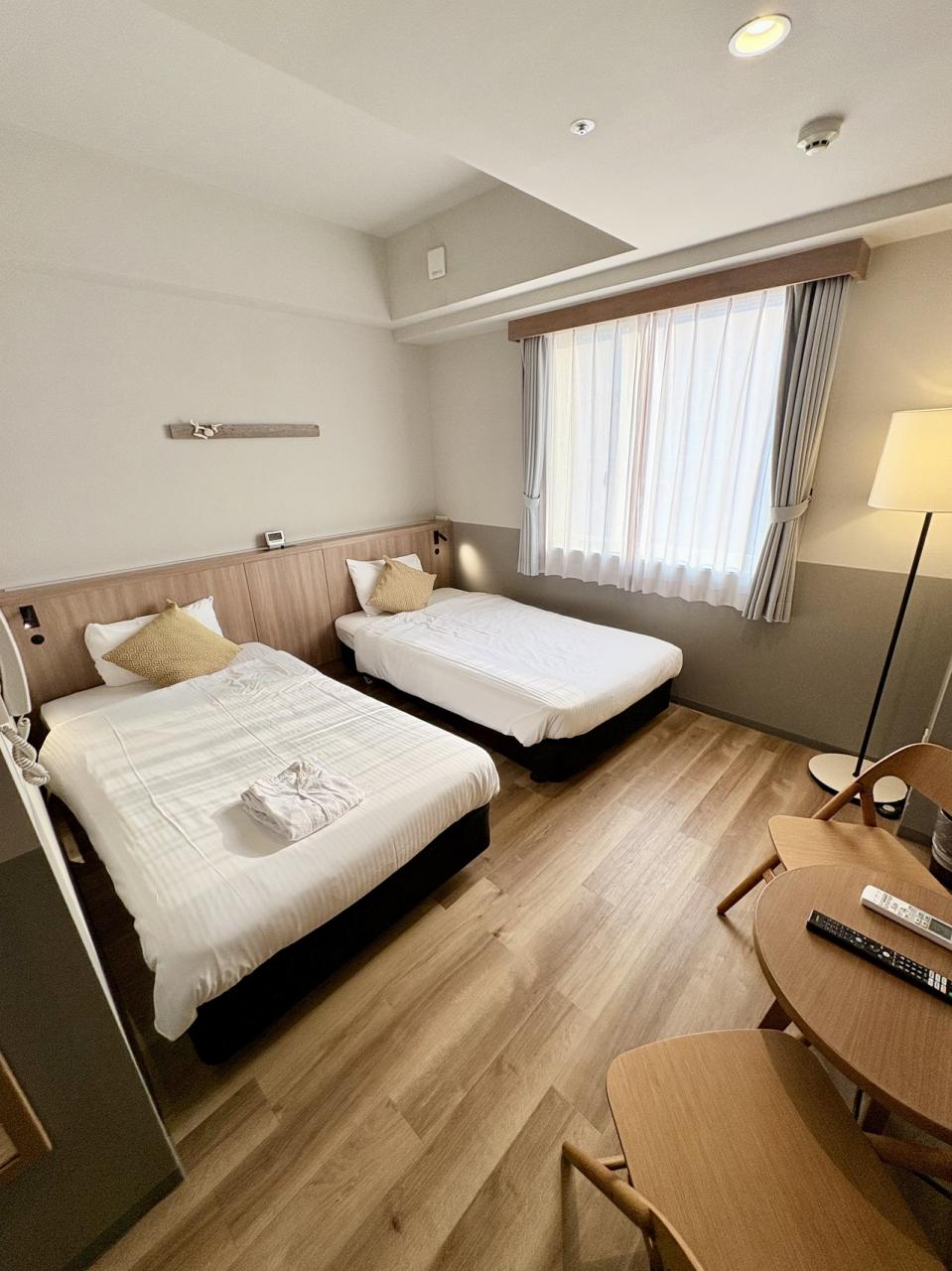 お水は冷蔵庫に1本、連泊時はフロントで申請すると追加を貰えます。 -