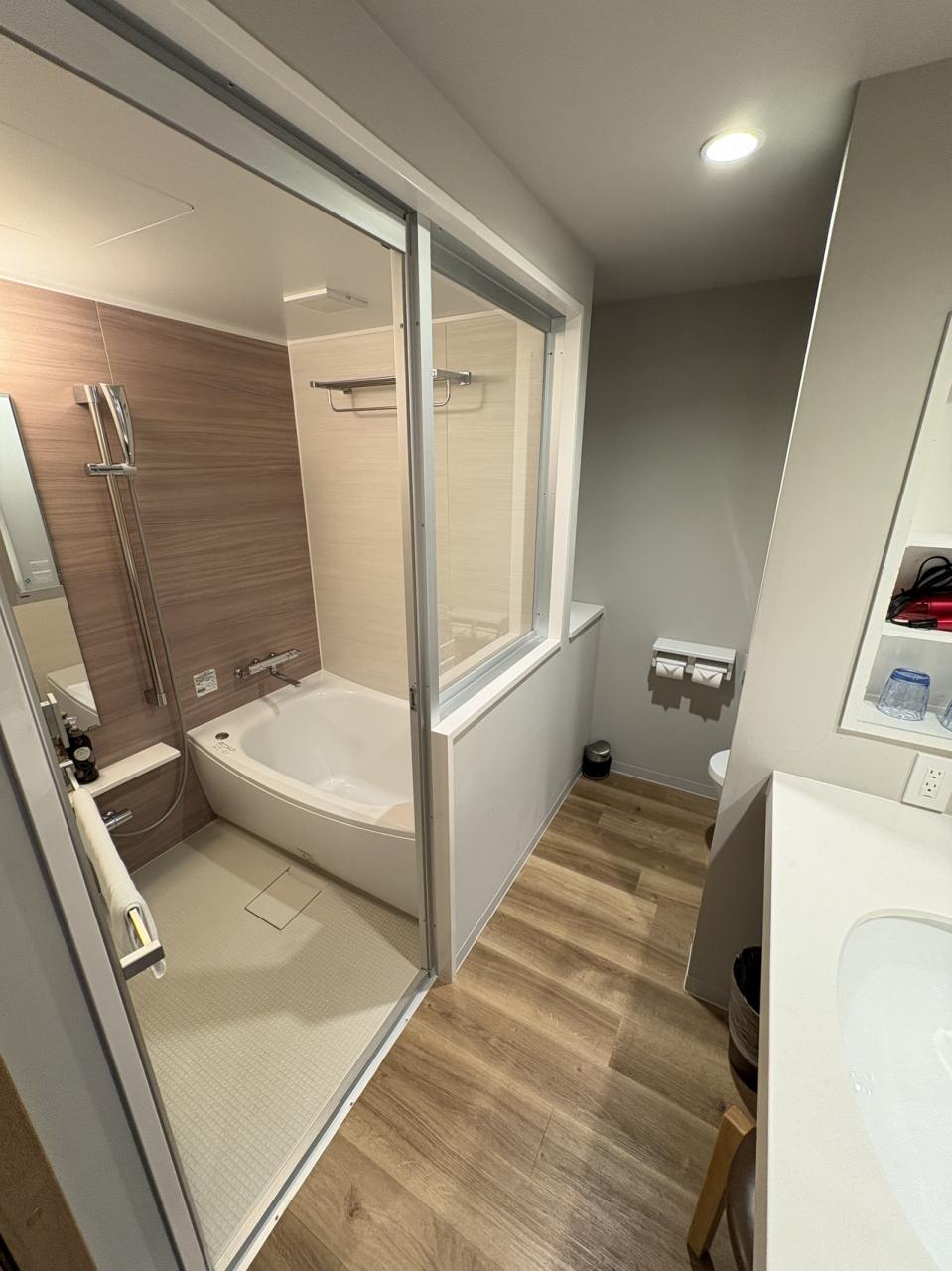 バスルームも広め、ただトイレに仕切りが無いので使い勝手はどうだろう?