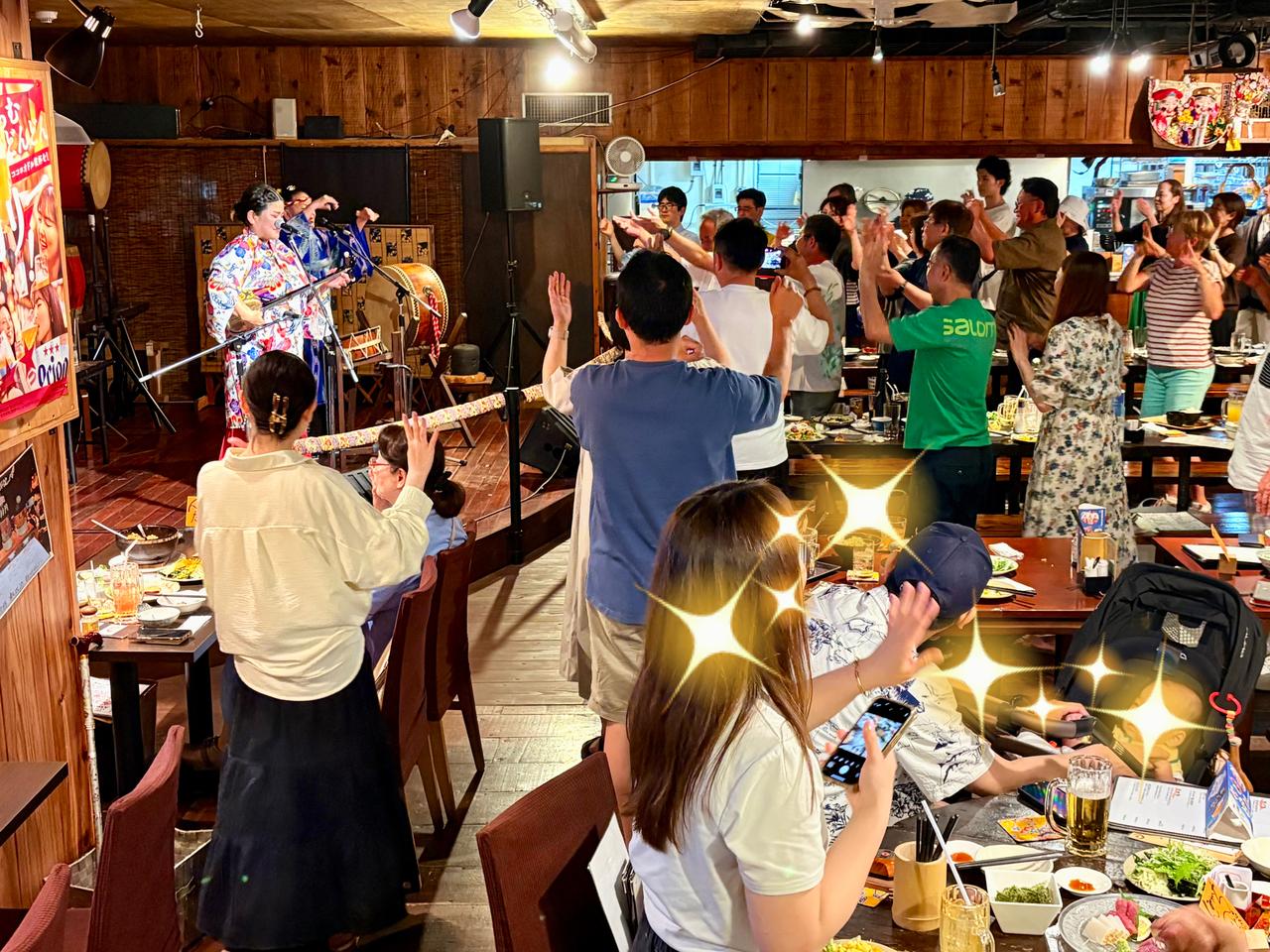 歌と踊り、最後はお客さんも一緒になって踊ります。自分も初めての体験。けっこう恥ずかしいけど、皆んな盛り上がってました~♬ -