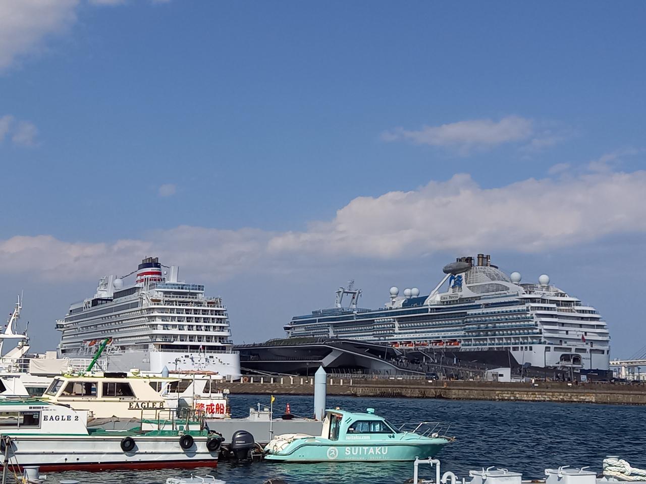 《横浜港 客船3隻入港》新港ふ頭&2隻は大桟橋(おおさんばし)に同時着岸