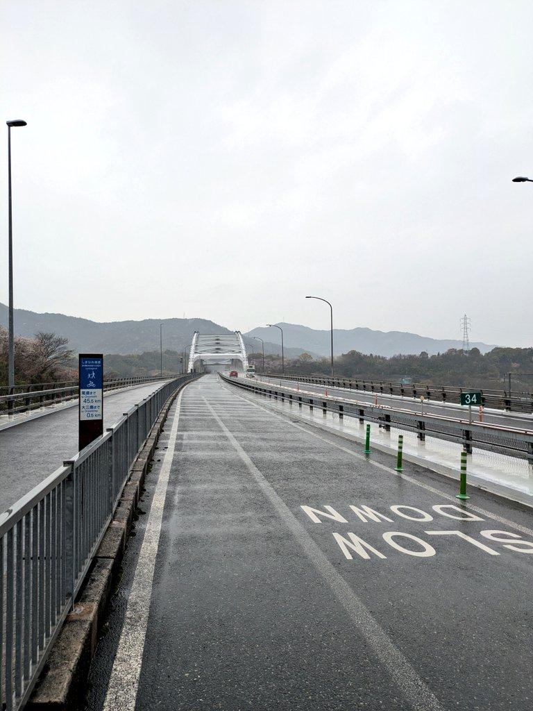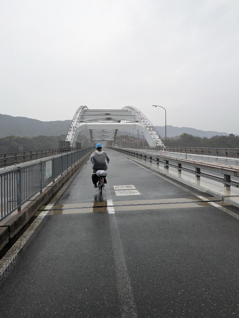 朝より強くなってきた雨の中、足元に気を付けつつ橋を渡る。