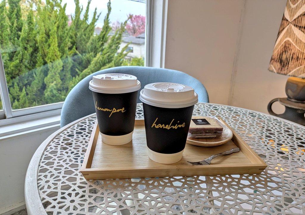 ホットコーヒーで暖まりながらレモンソフトをいただく。