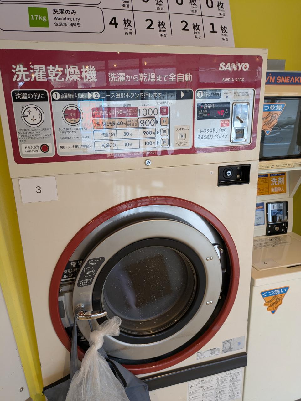 宿に荷物を置かせてもらって、ミヤウラ商店のコインランドリーへ。
