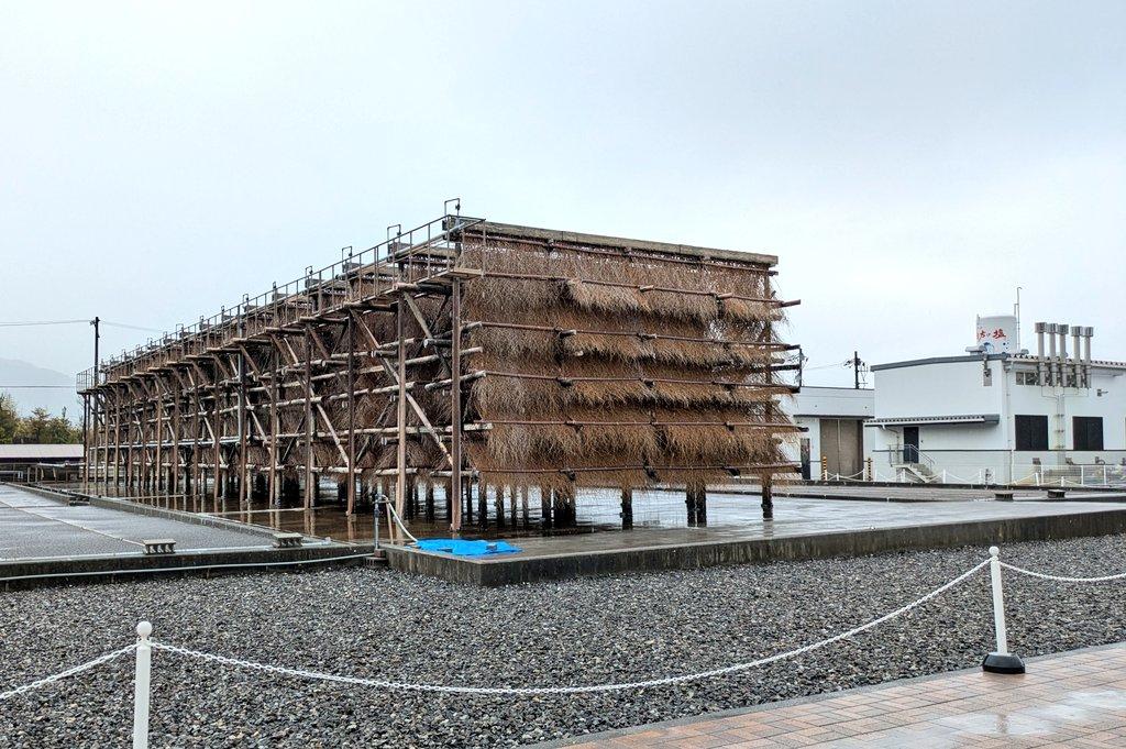 売店でお土産を買った後、工場の東側に回り込んで流下式枝条架併用塩田を見学。 -