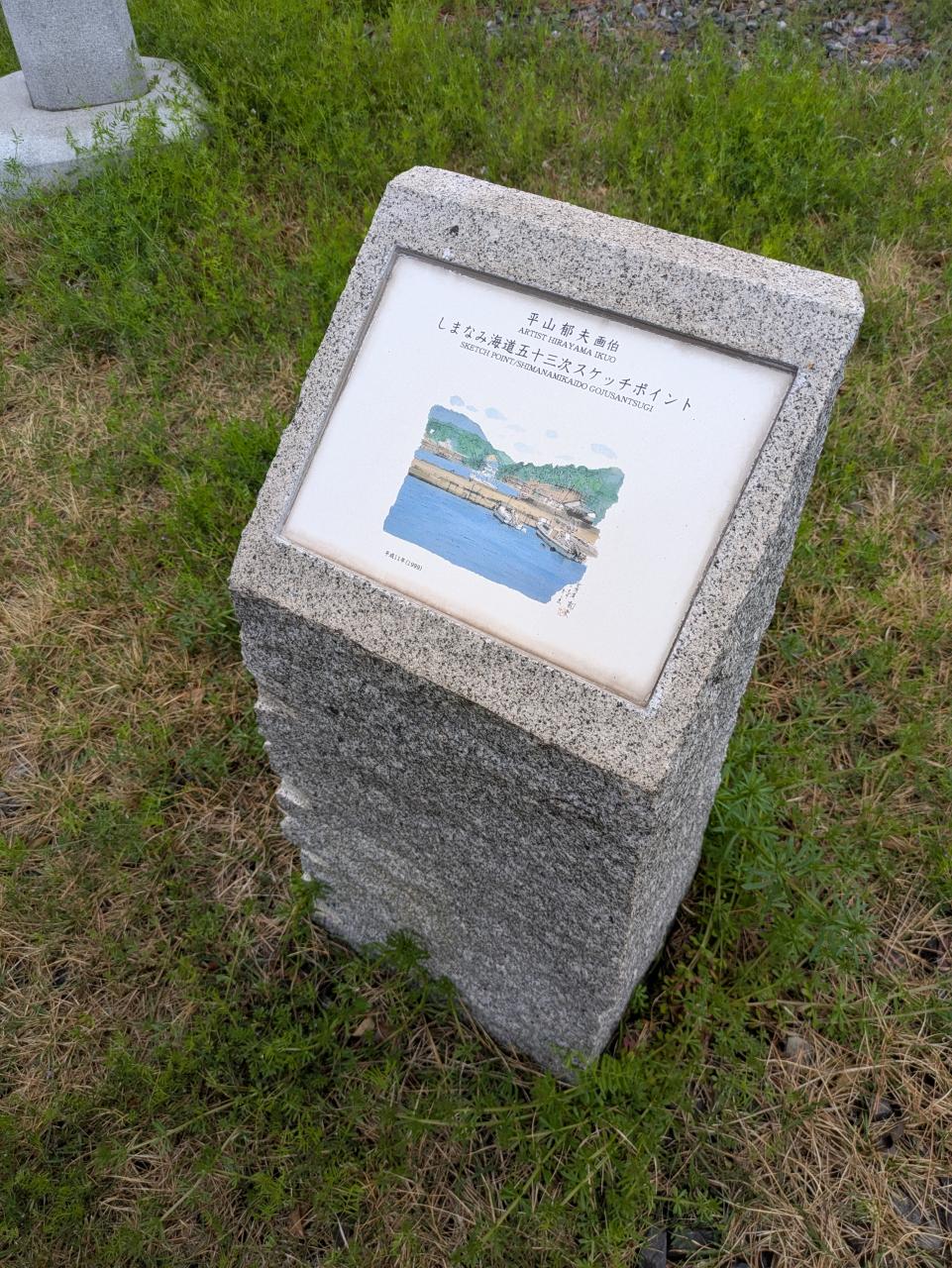近くに何やら案内板らしきものがあるなと近づいてみると、平山郁夫の「しまなみ海道五十三次スケッチポイント」とあった。