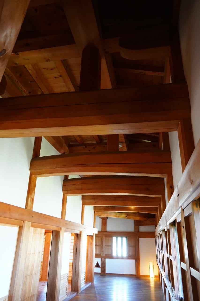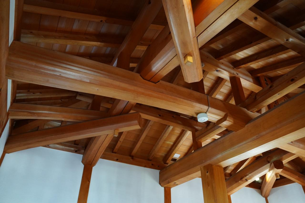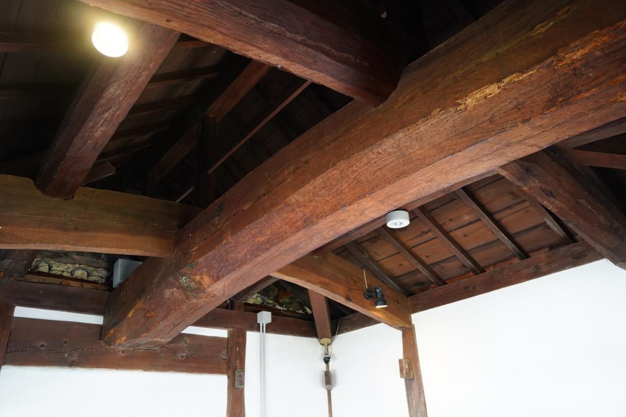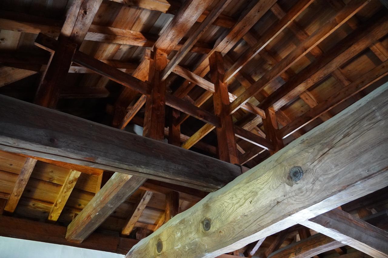 天守の屋根裏の複雑な骨組み。