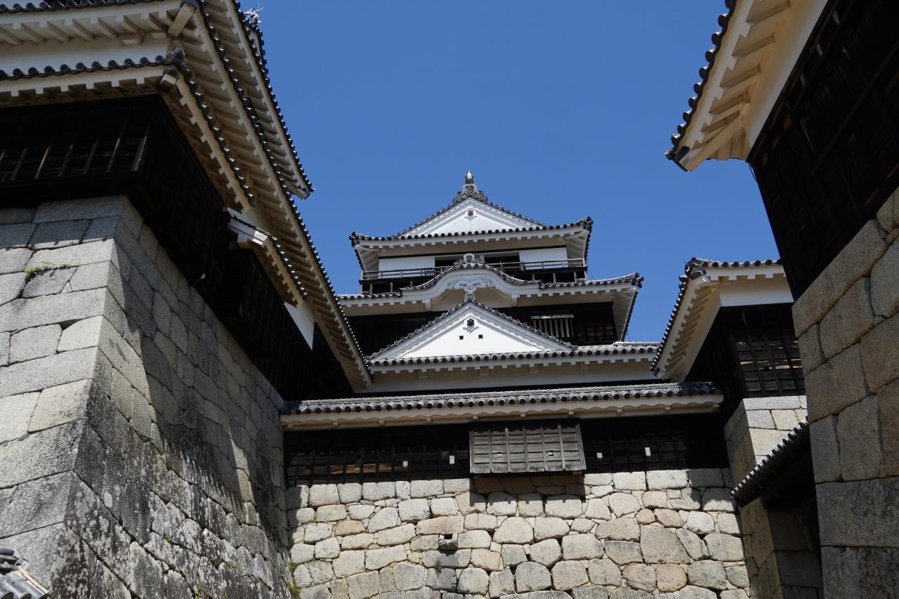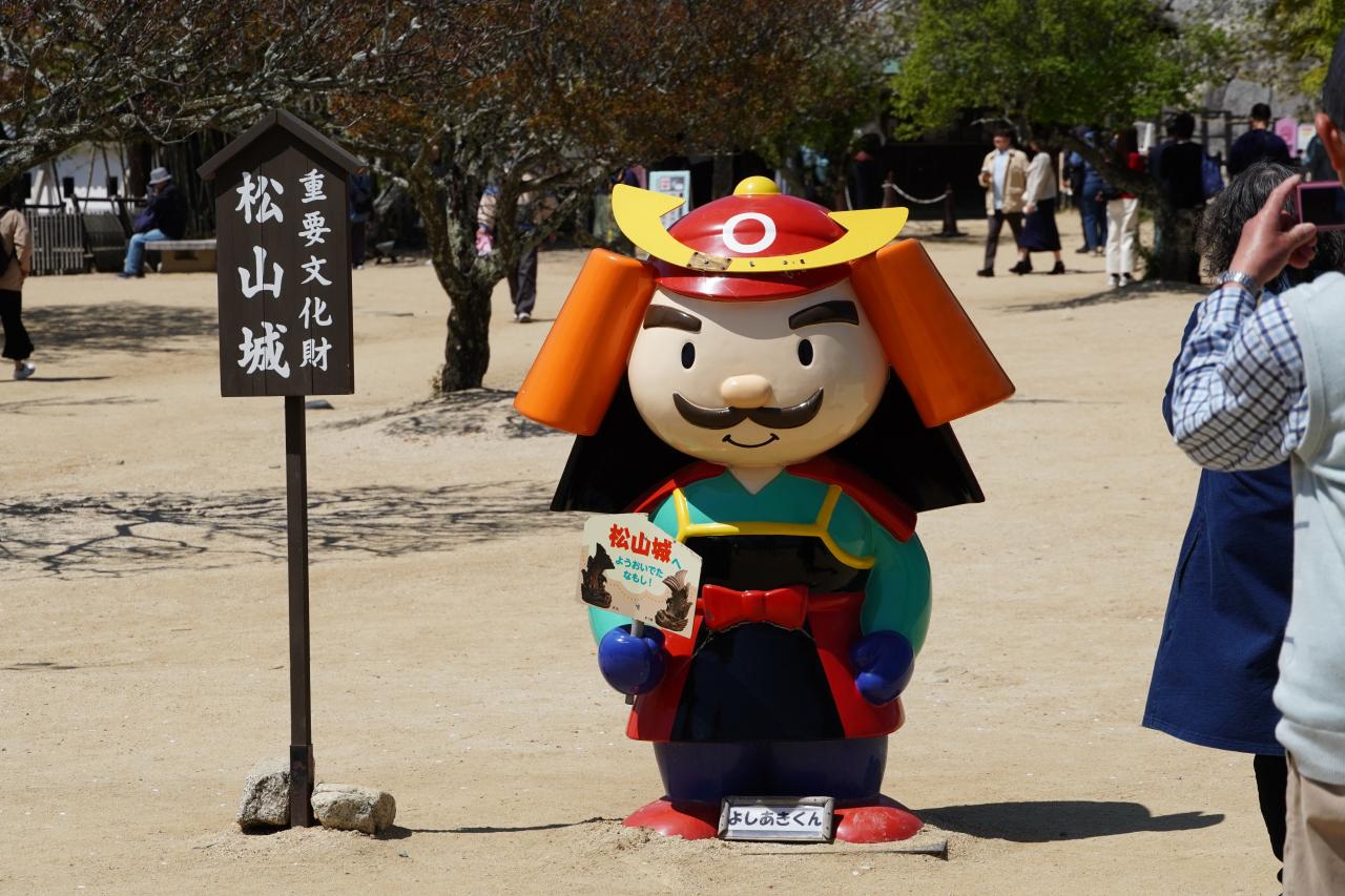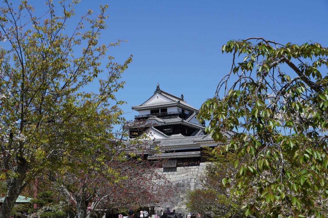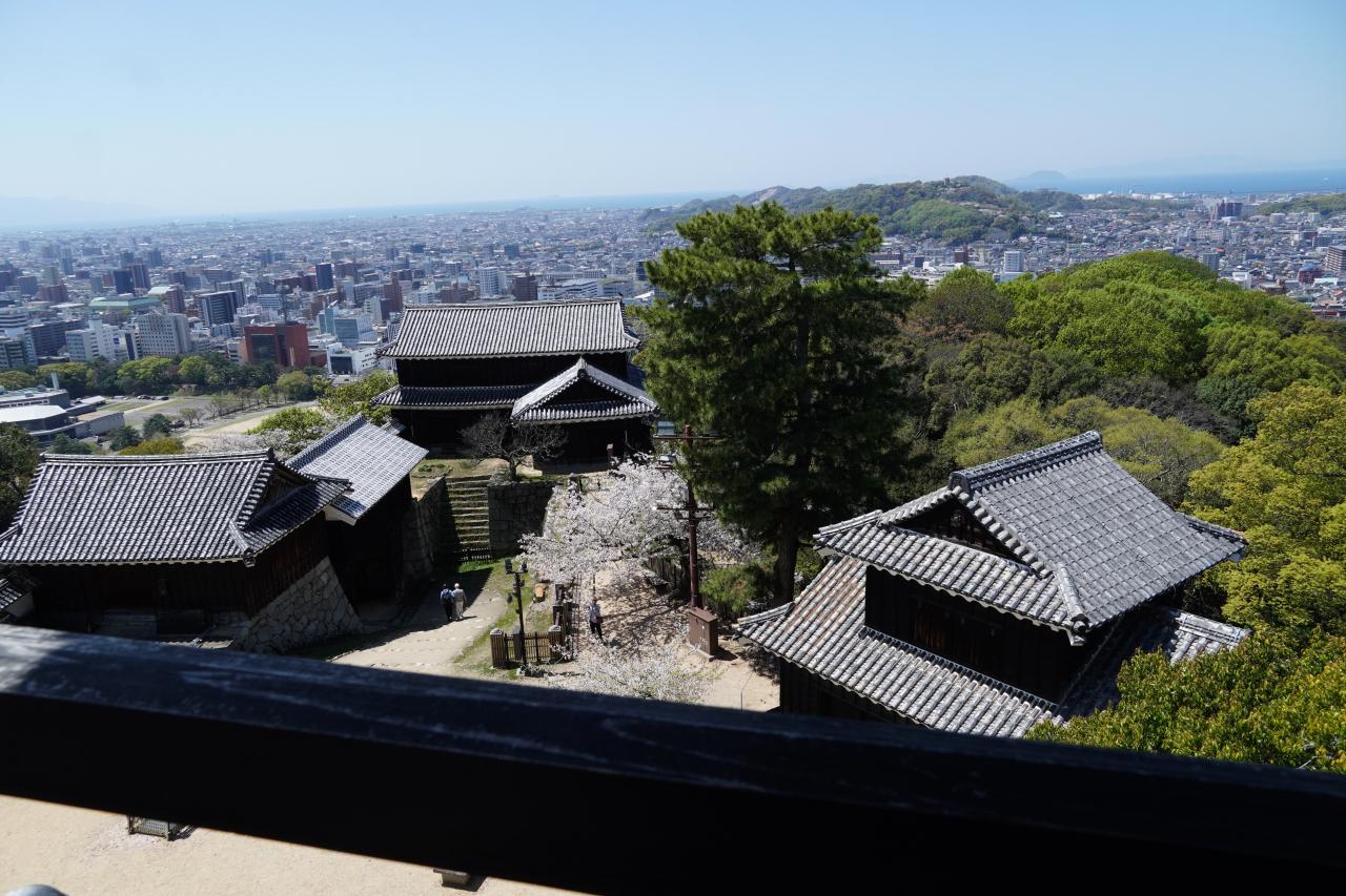 松山城は現存12天守最後の1城です。登城するにはロープウェイやリフトがあり、桜も残っており、沢山のお客さんでとても賑わっていました。