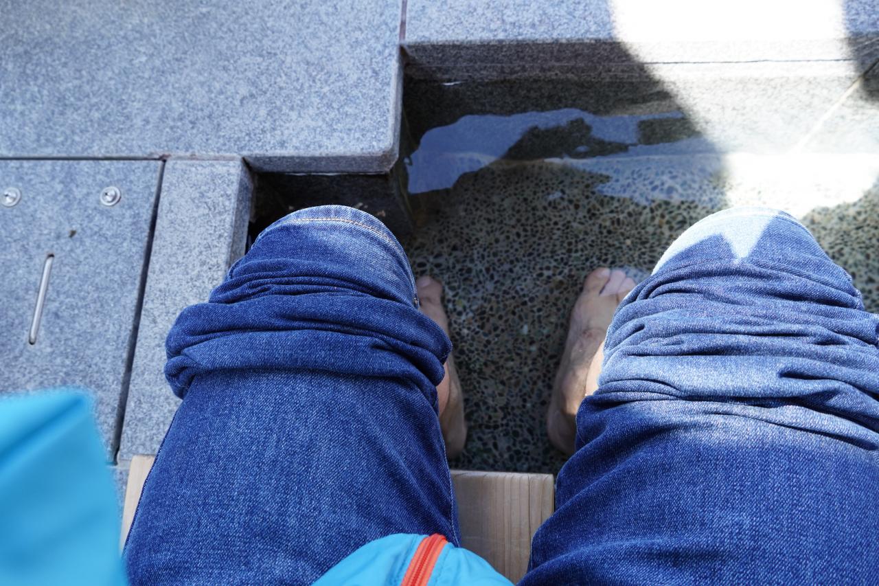 駐車場の隣にあった無料の足湯。