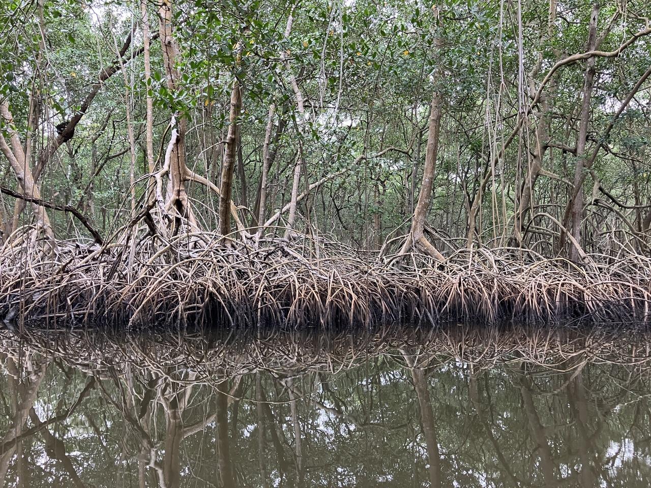 このようにマングローブがいっぱいある中を、鳥などを観察して説明がありながら進んでいきます。