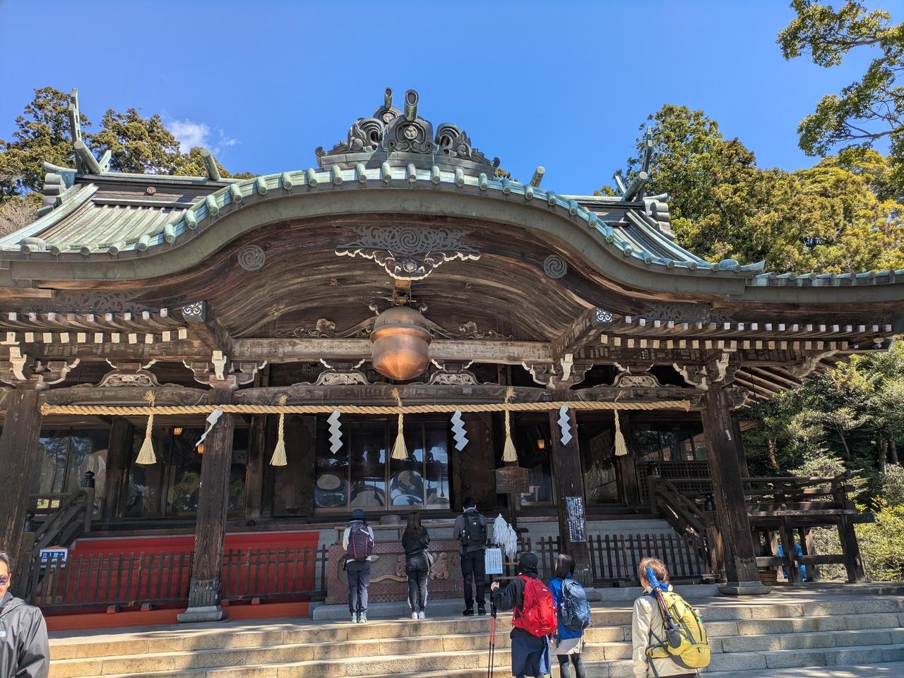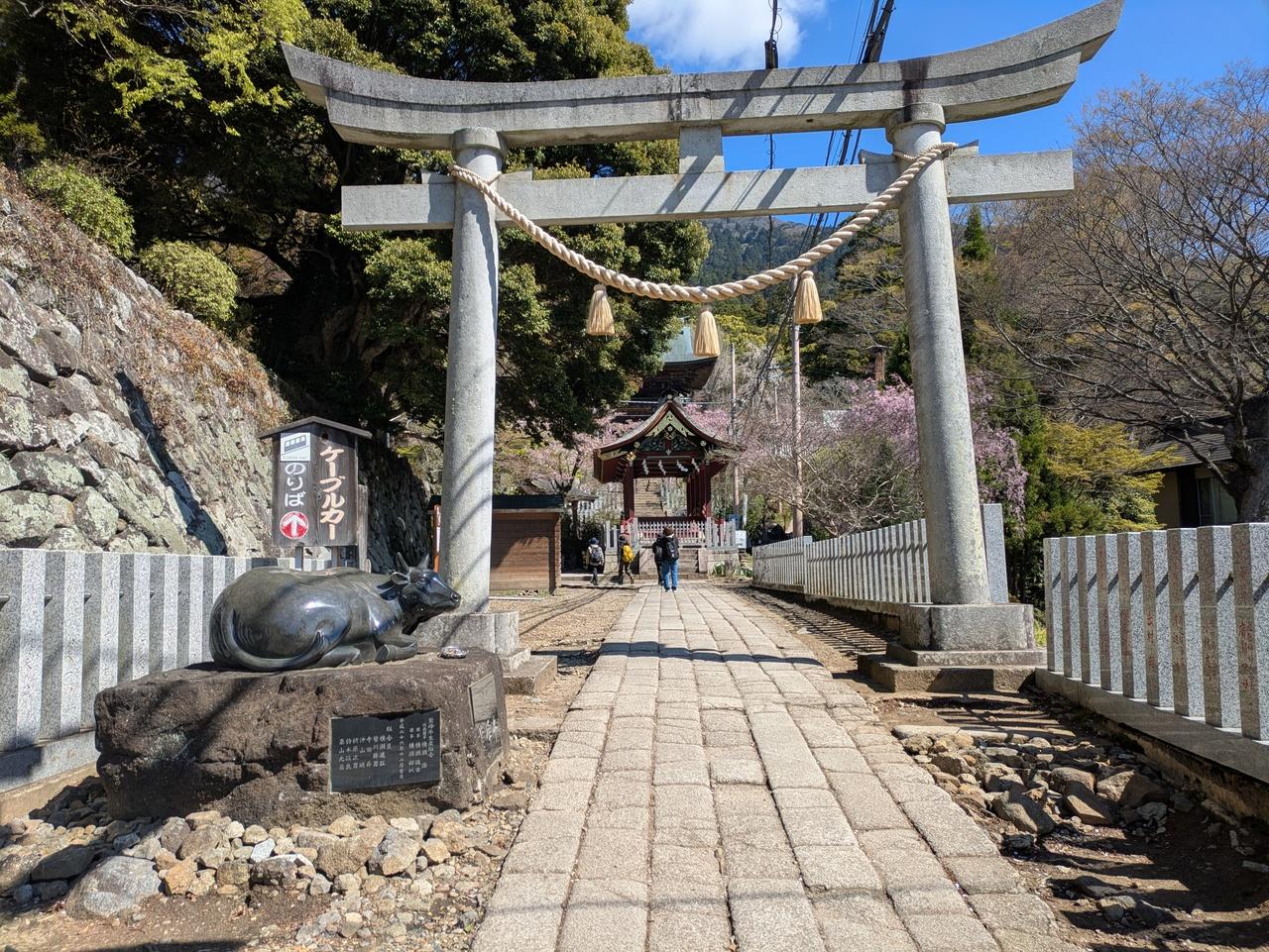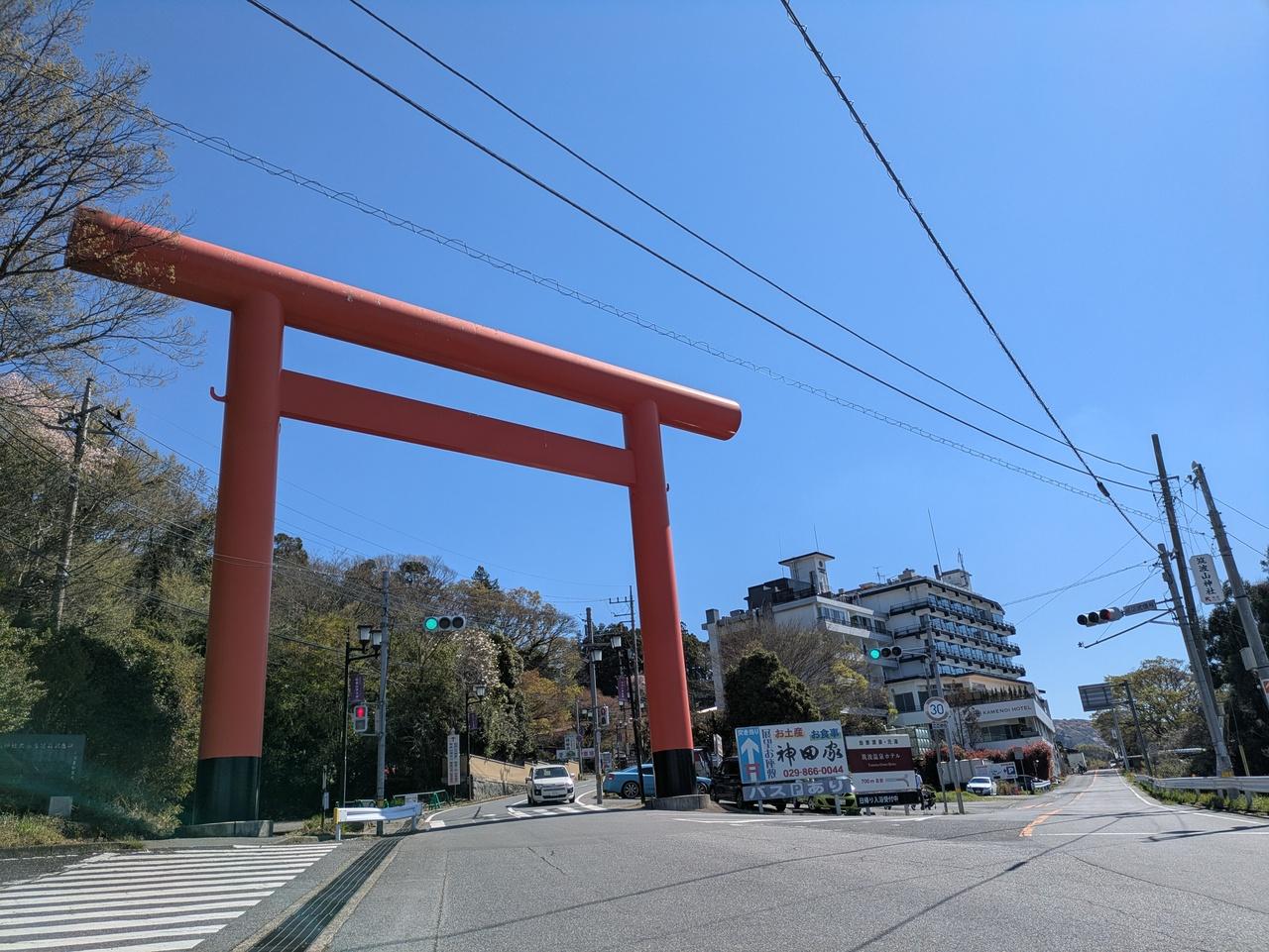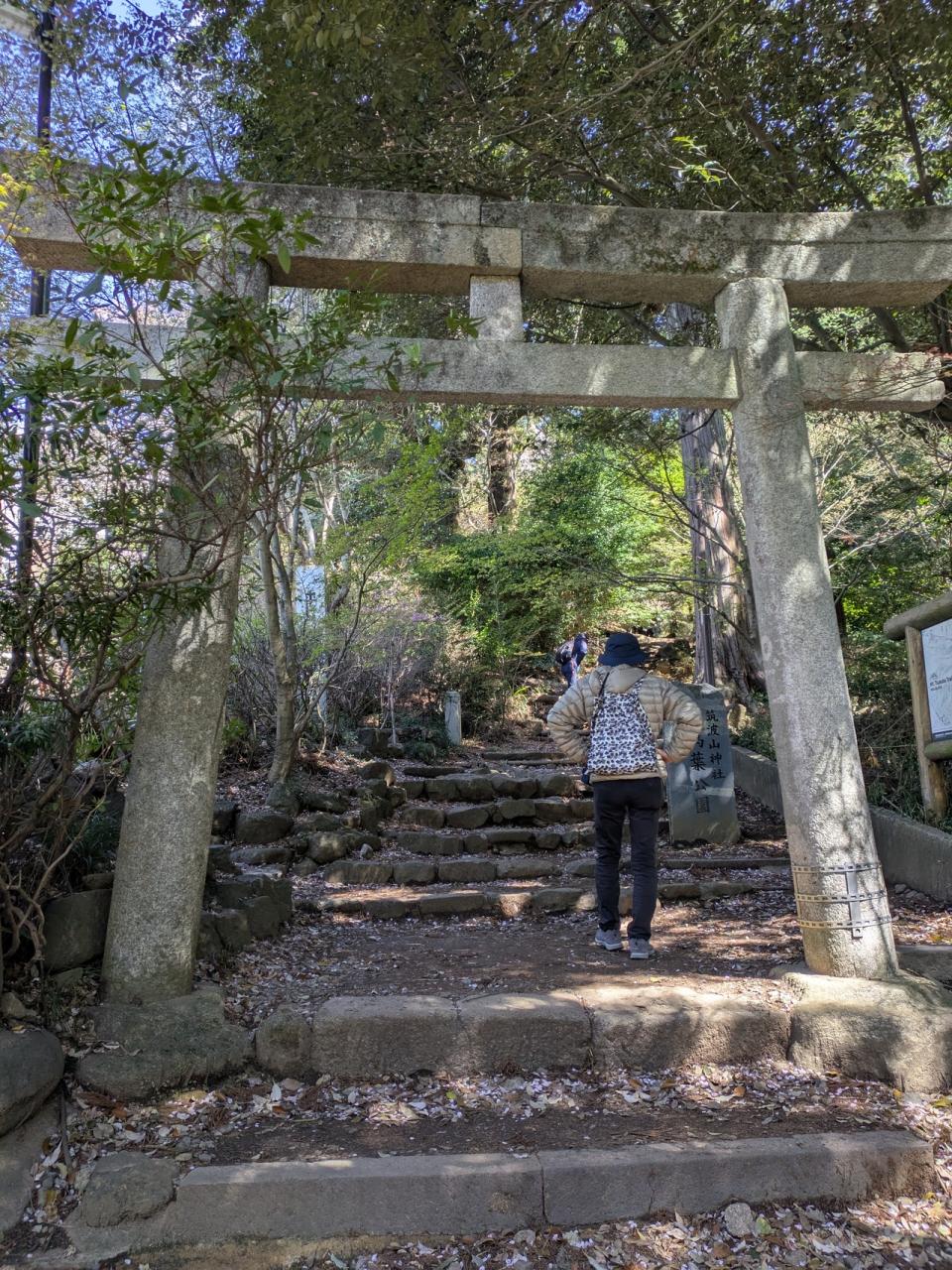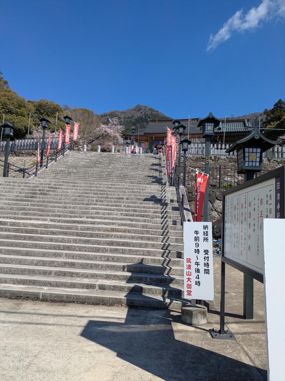 約40分程バスに揺られ筑波神社前で降りた。出迎えてくれた大きな鳥居。