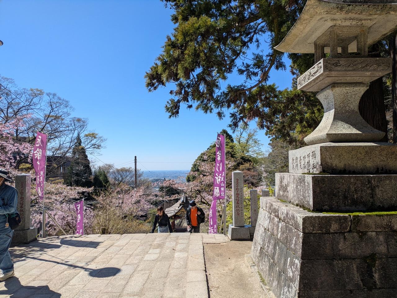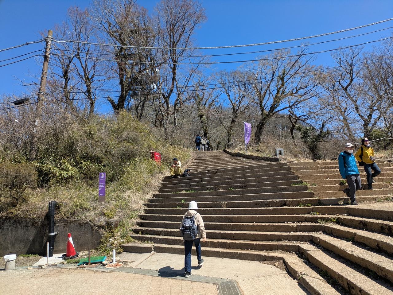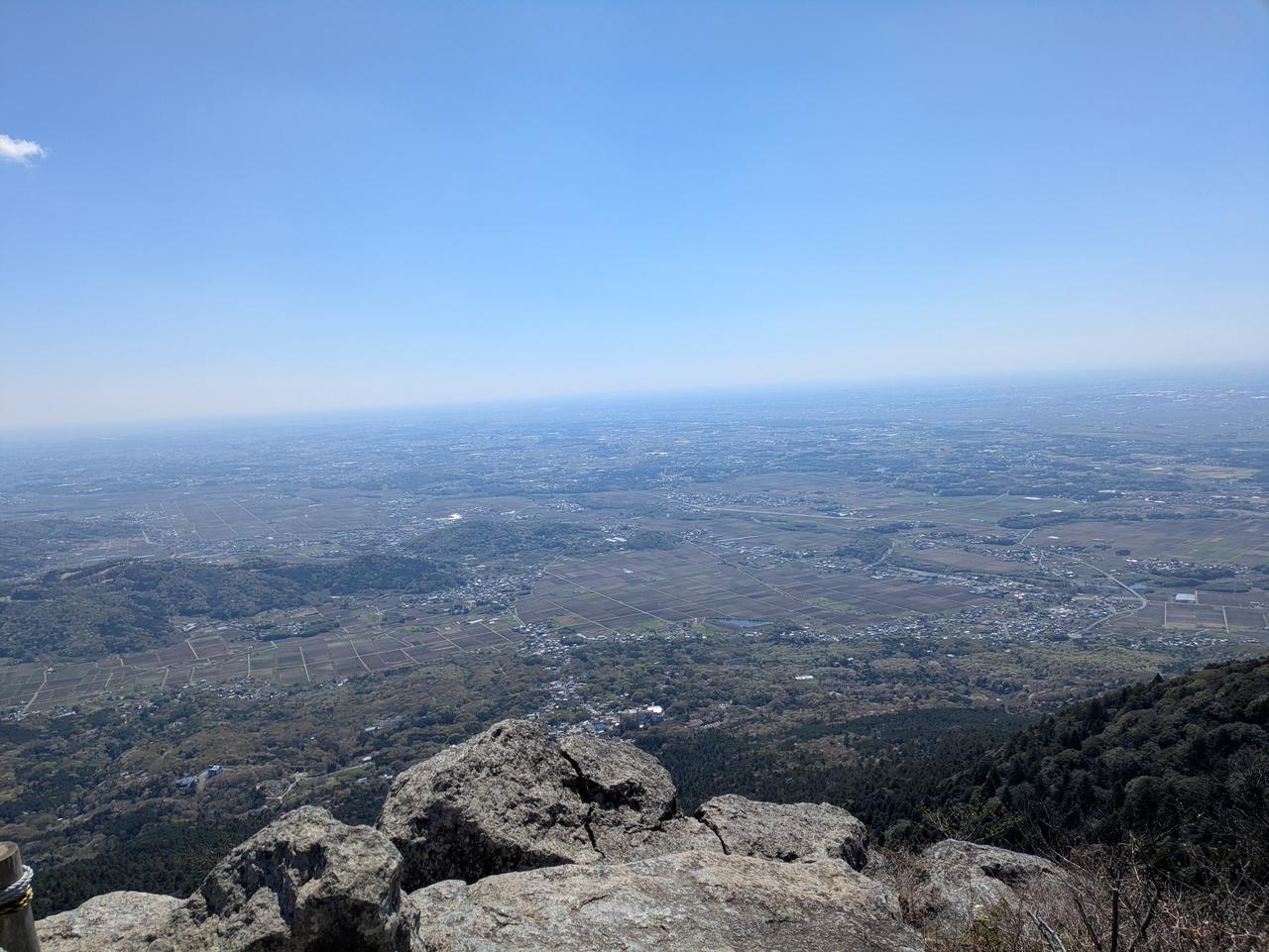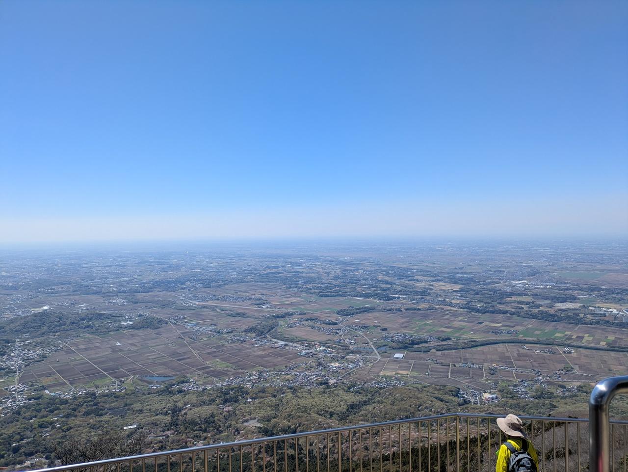 階段を上り振り向くと遠くには一直線に広がる関東平野。