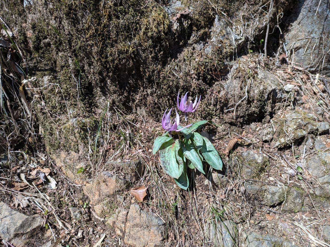 カタクリの花が見頃で癒してくれる。ちょっと一休み。