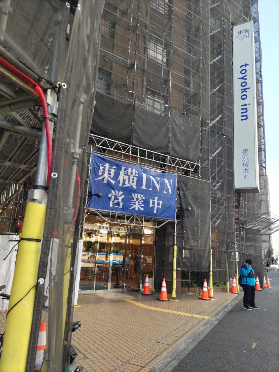 桜木町駅から10分ほど歩いて、横浜市役所東の東横イン横浜桜木町をチェックインをした。ホテルは外装リフレッシュ工事中。
