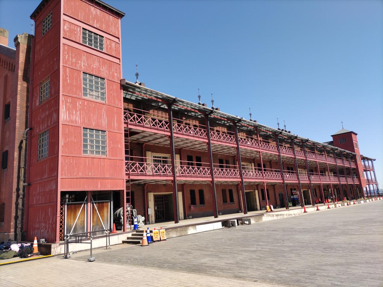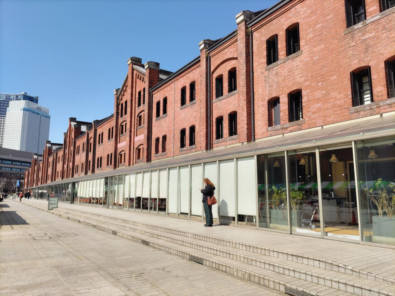 山下公園を西に歩いた。好天で春のような陽気であったため、ベンチに座ってのんびりする人や、スケッチを描いている人に沢山出会った。氷川丸、「赤い靴の女の子」像の前を通って西に歩いた。風がとても心地よい。山下臨港線プロムナードを通って、赤レンガパークに向かった。赤レンガ倉庫2号館の中の売店やレストランでは、沢山の人がショッピングや食事を楽しんでいた。