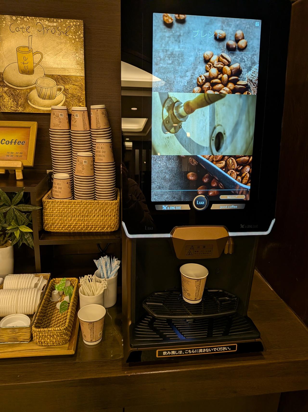 ロビーで珈琲無料サービス。