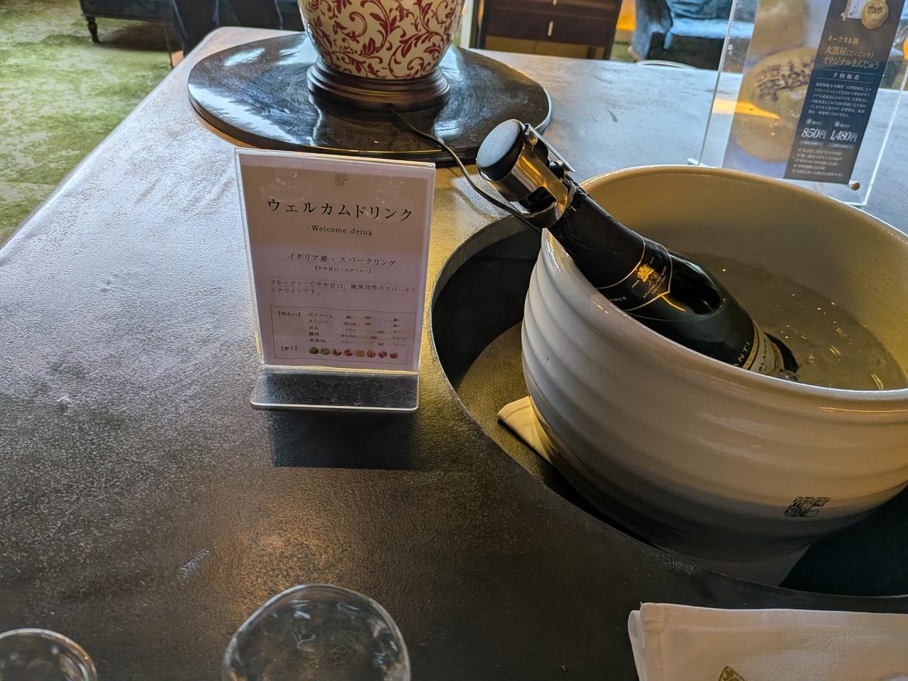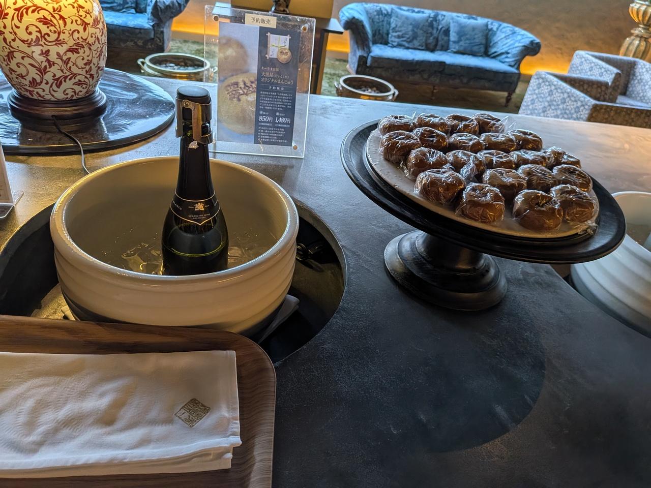 一階ロビーで又スパークリングワインとお饅頭も頂いた。