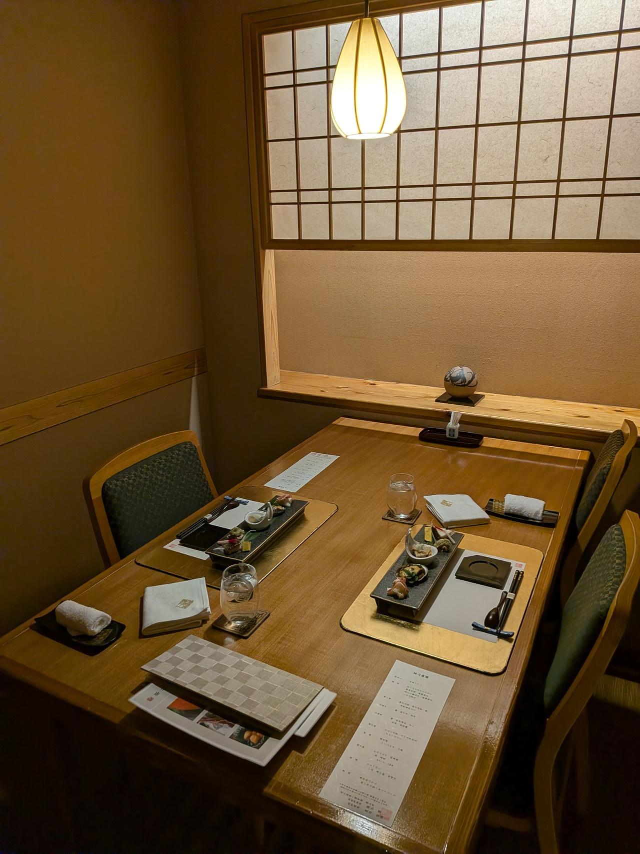 夕飯と同じ席、半個室。