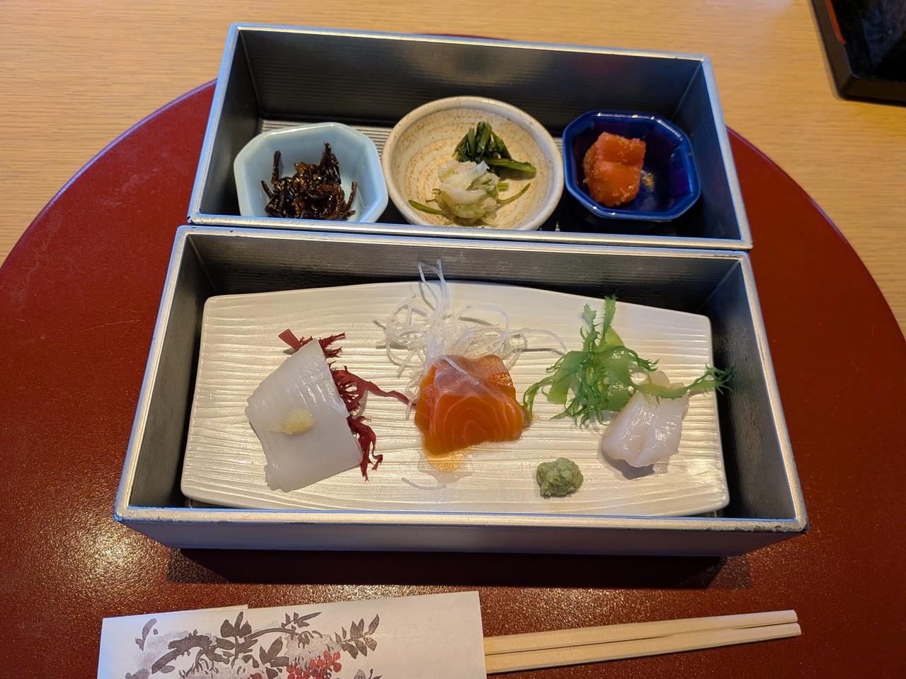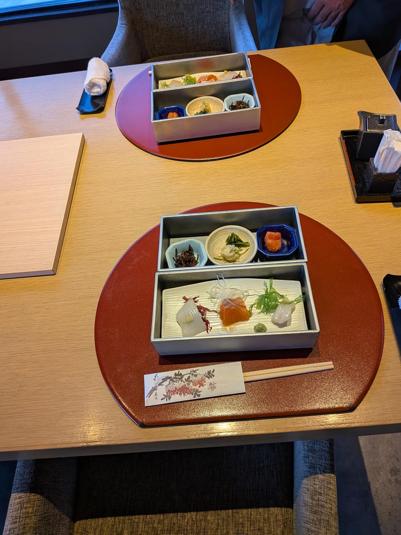 12月に宿泊した時『箸で食べるフレンチ』にしたら残念だったので今回は和食会席。 -