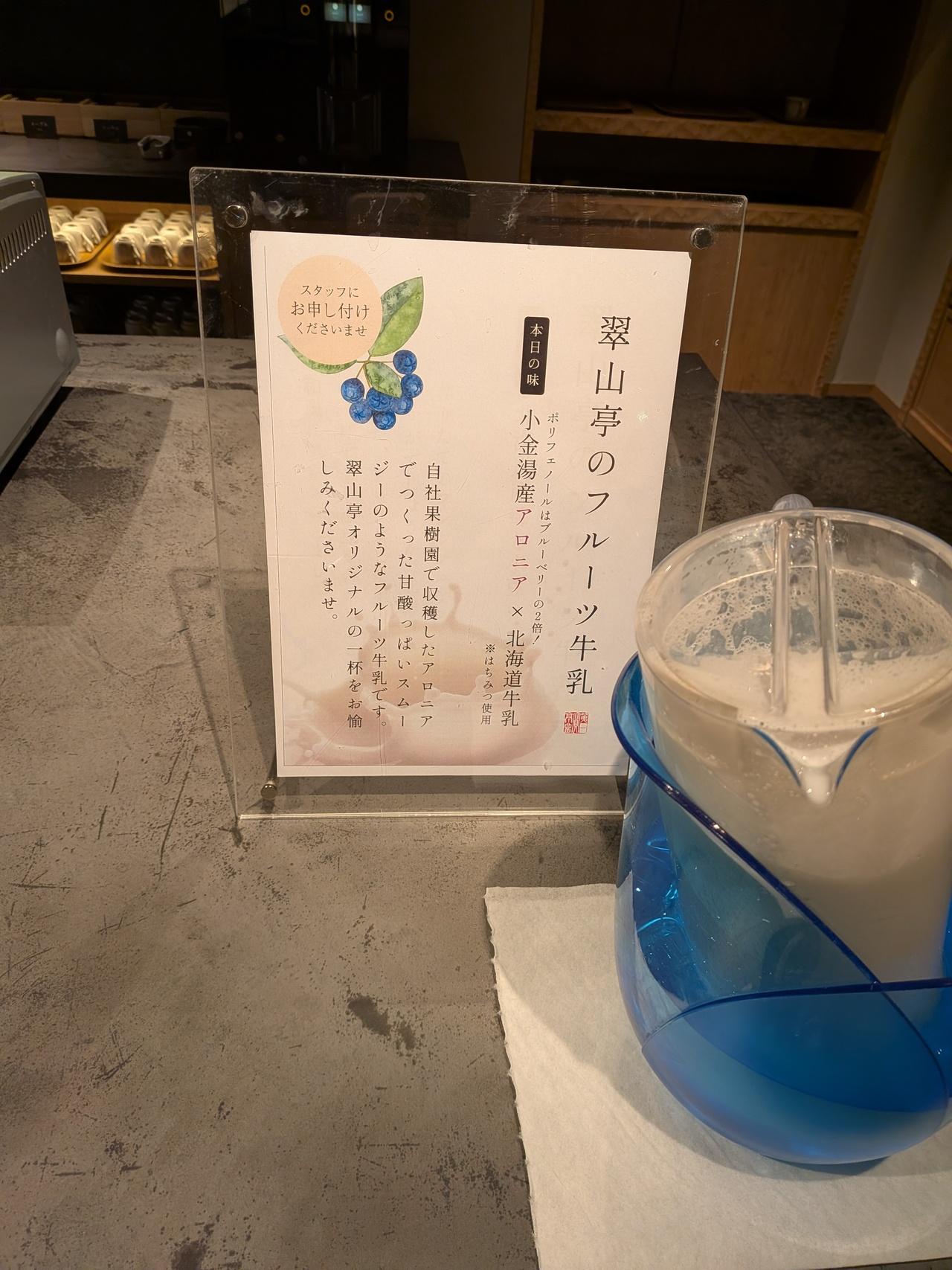 朝食は翠山亭桑の木、エクスクラメーションベーカリー、食堂いち、、雨の日と雪の日、小金湯温泉から選べたので行ったことのない『小金湯』にした。