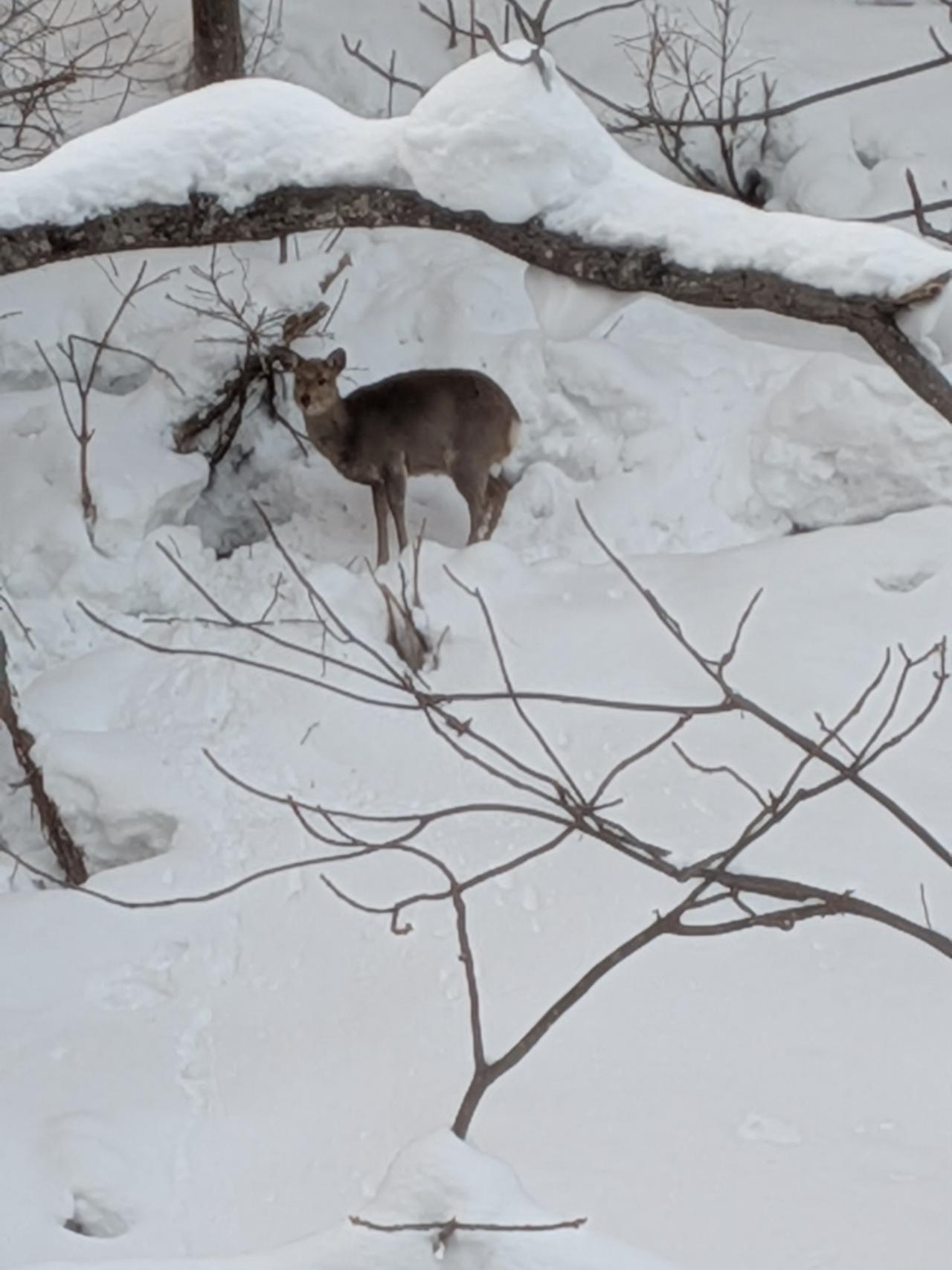 部屋の外を見ると鹿がこちらを見ていた。