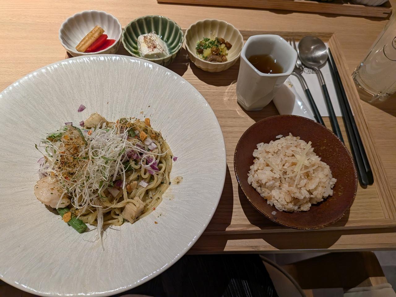 休日ビルヂングの洋麺屋のホタテのペペロンチーノ。 -