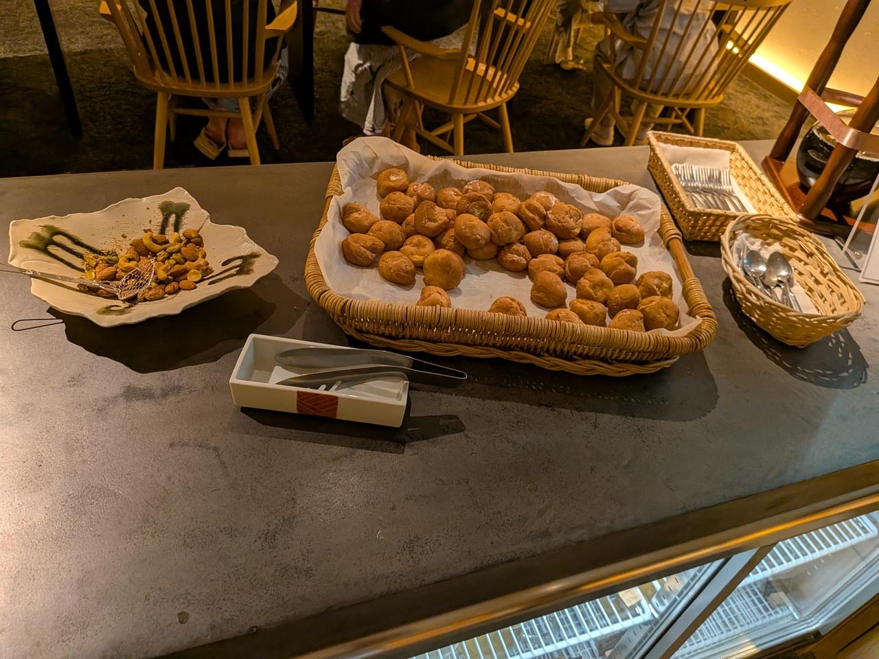 テーブルの上にお菓子。