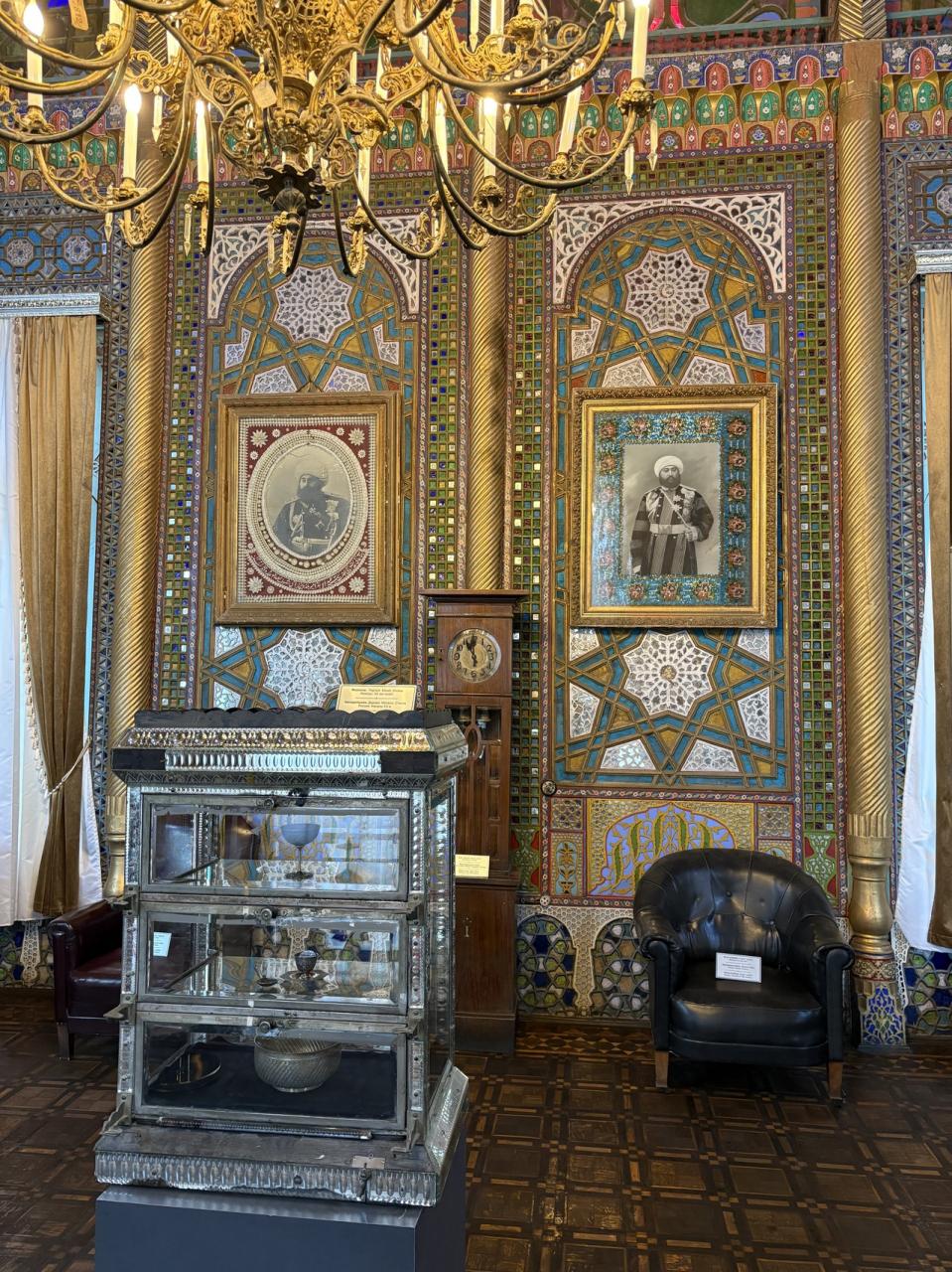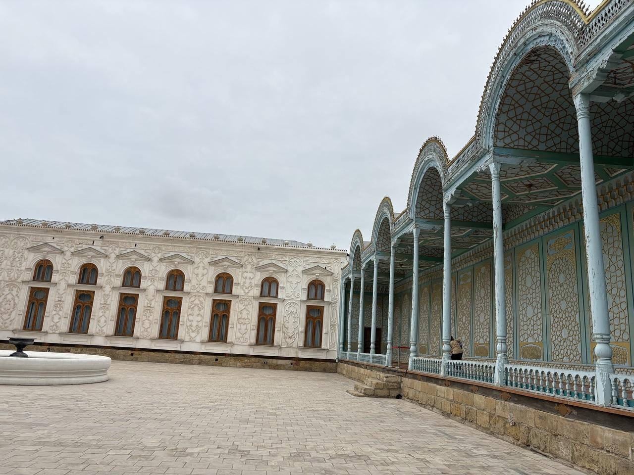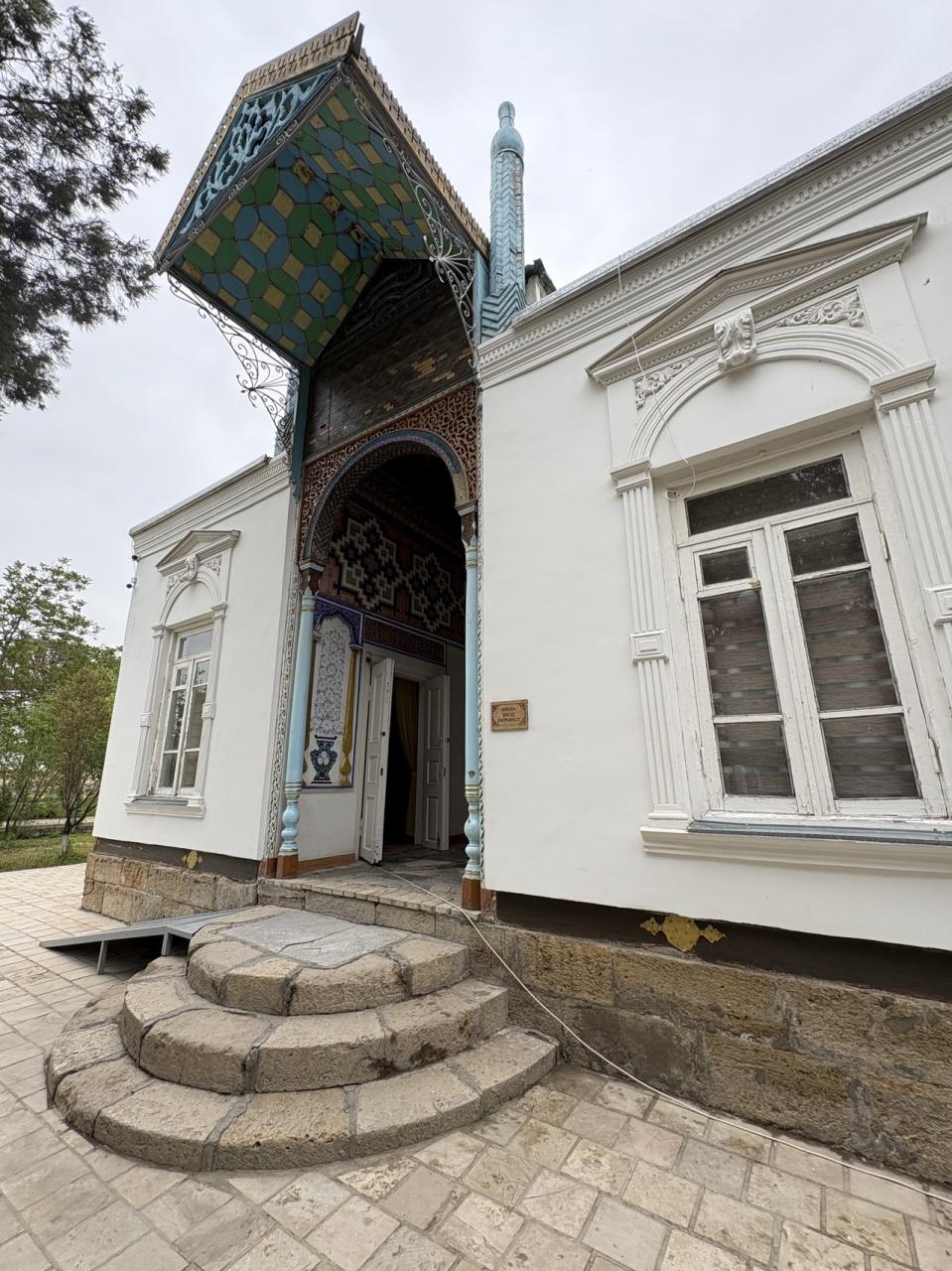 外観は西洋風、内装は主に東洋風の贅を尽くした設計で、ロシアから運ばれたシャンデリアのために、中央アジア初の発電機が据え付けられたとか。ロシア帝国からの賓客などを接待した。