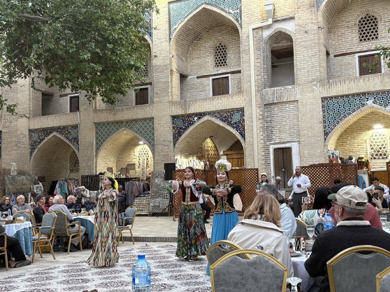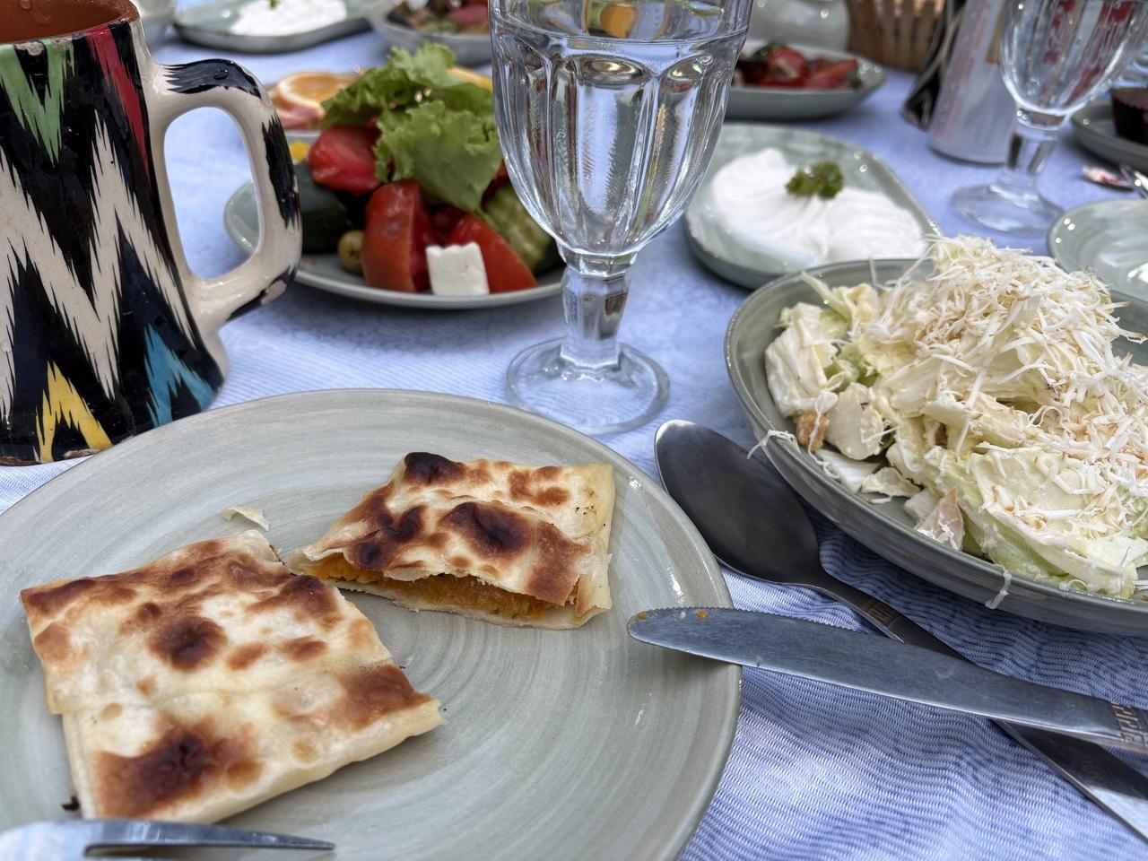 今日は民族舞踊を見ながら夕食。かぼちゃ入りトルティヤ、シーザーサラダ(これが美味しかった。レタスがシャリシャリ、チーズもさっぱりたっぷり)、奥もお野菜。ウズベキスタンは全体に野菜が多い