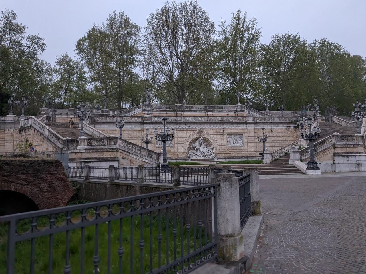 噴水もきれいさっぱり誰もおらず。これ昼とかだったらツーリストが変なポーズして写真撮りまくるところだな。