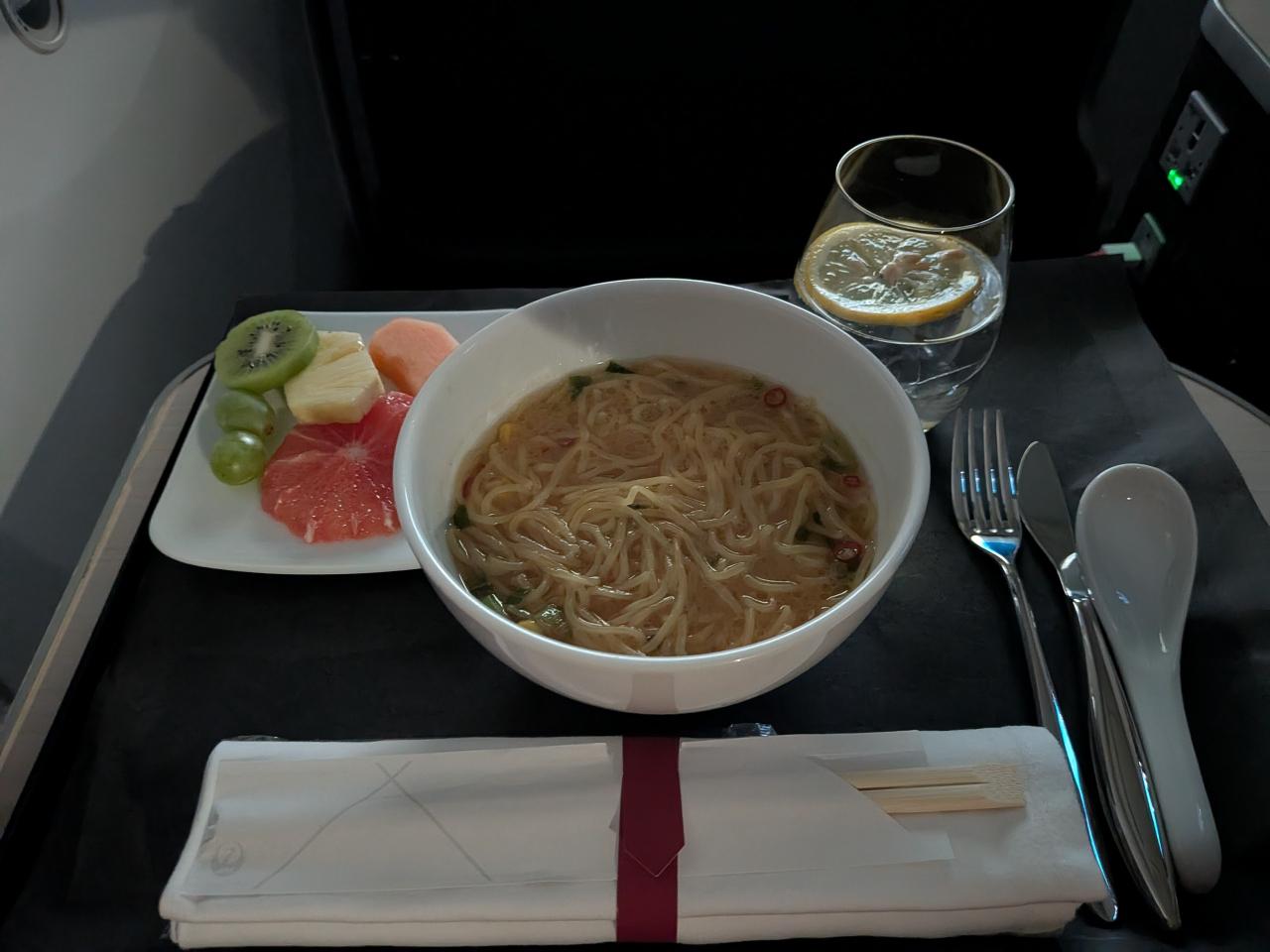 帰りはビジネスアップ成功。この旅程だと行きとクルーが一緒なのでCAさんにびっくりされるのは毎度のこと。