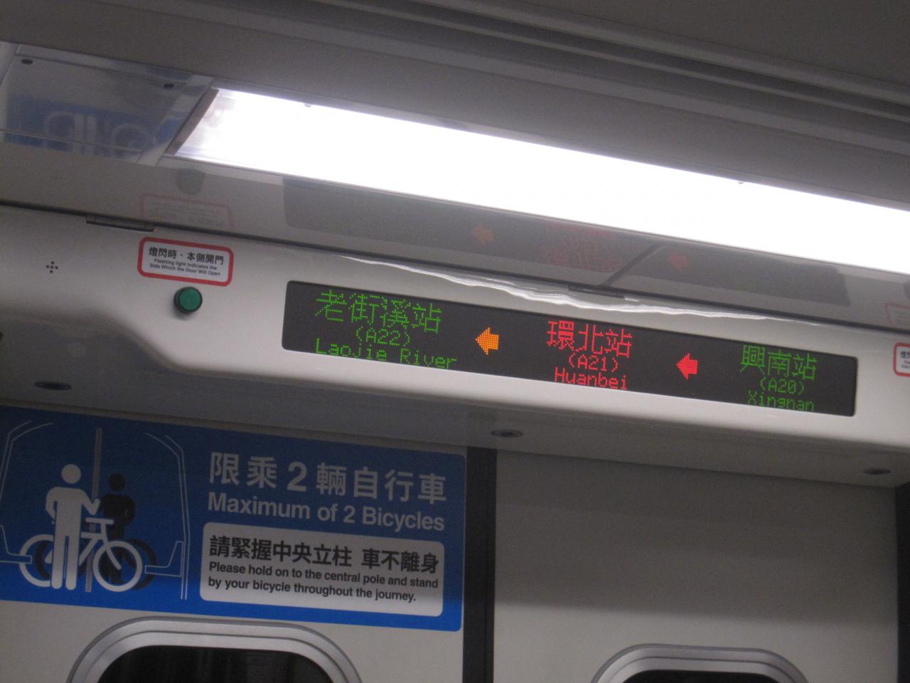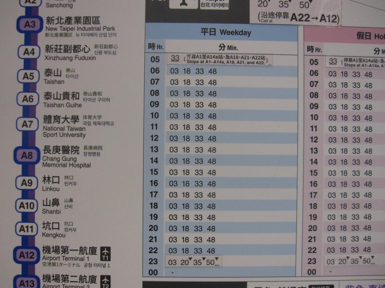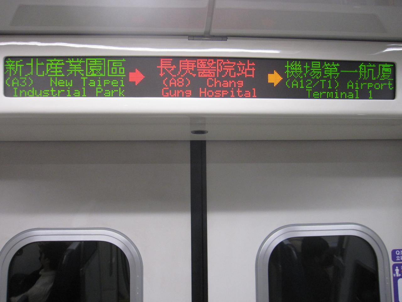 この時間帯の直達車(急行)は機場第二航厦(空港第2ターミナル)止まりなので、途中の長庚醫院駅で普通車(各駅停車)に乗り換えます。