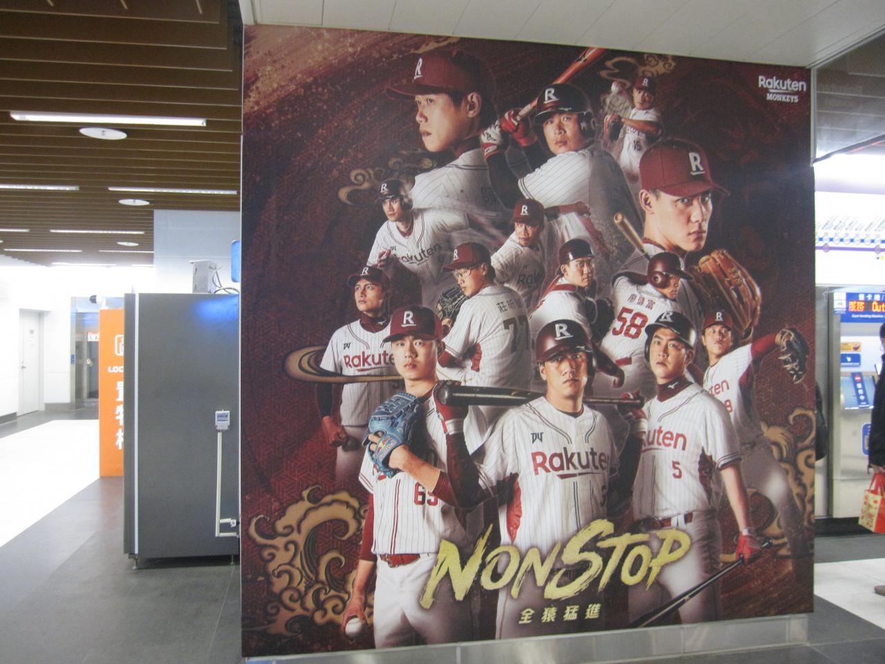 駅構内には中華職棒(台湾プロ野球)の楽天モンキーズのポスターが掲示されていました。