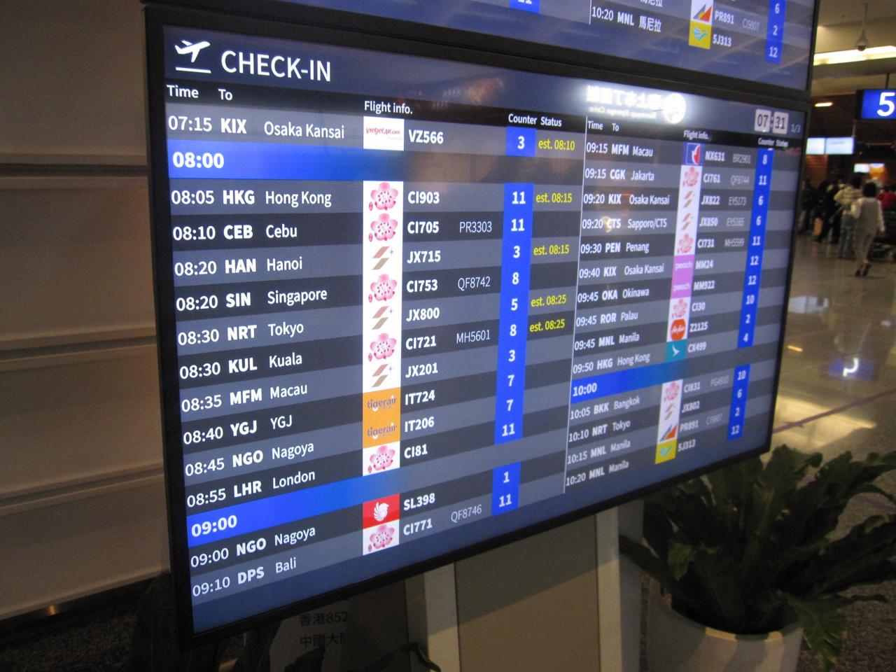 展望デッキを楽しんだ後は急ぎ足で第1ターミナルに戻り、出国手続き・手荷物検査を済ませてB2番搭乗口へ。
