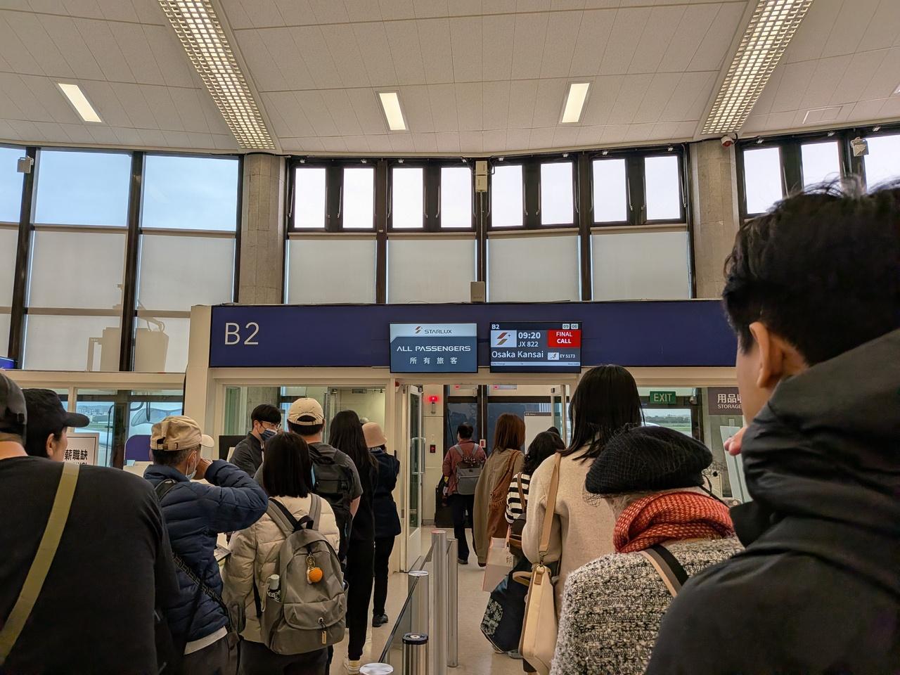 搭乗口では、搭乗予定のJX822便の搭乗案内が始まっていました。台湾桃園国際空港 (TPE) 空港