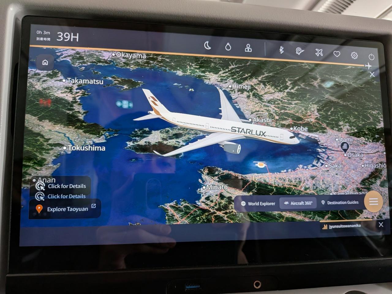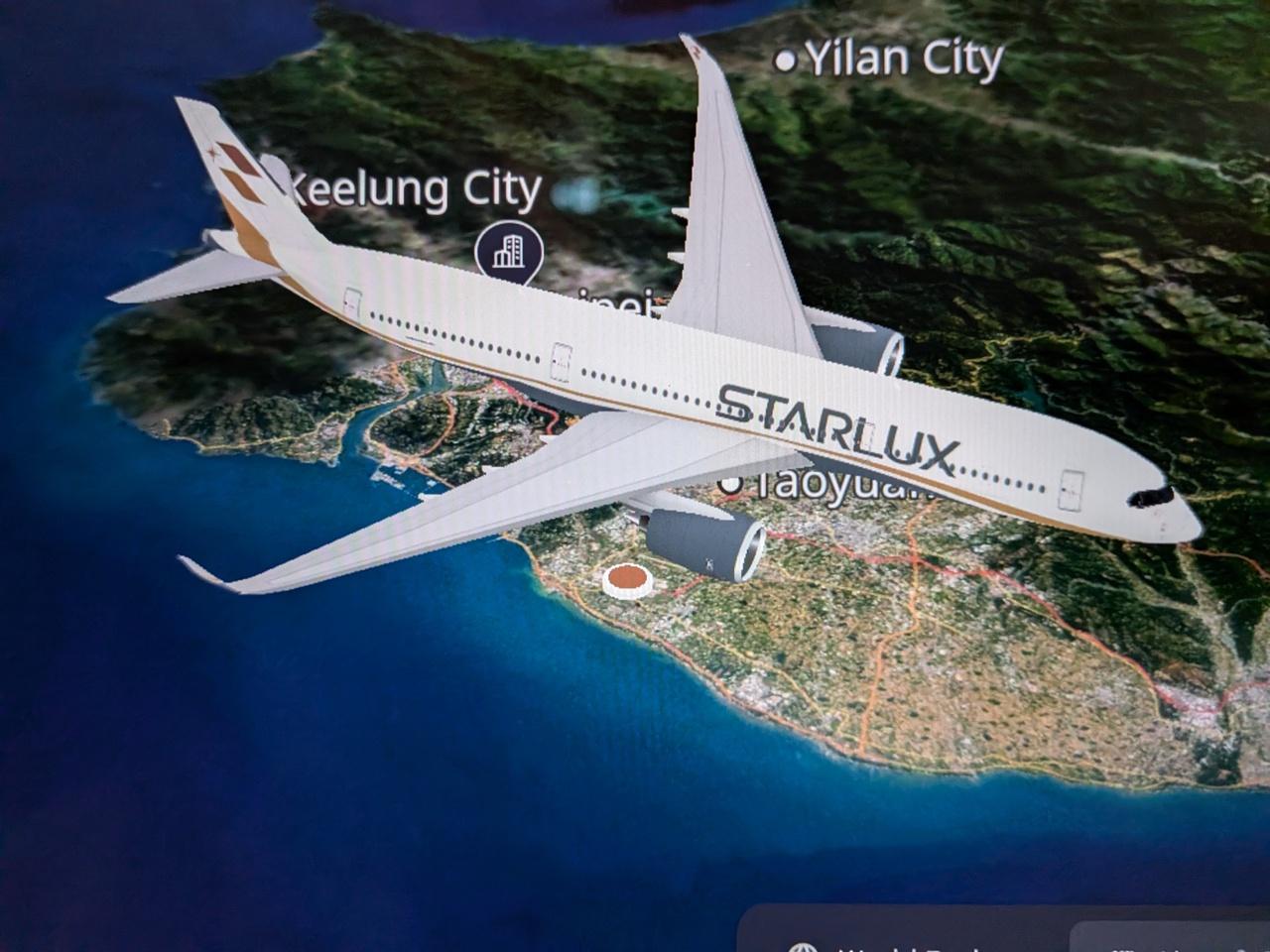 ナビゲーションマップで忠実に再現されたA350-900XWBのフォルム。
