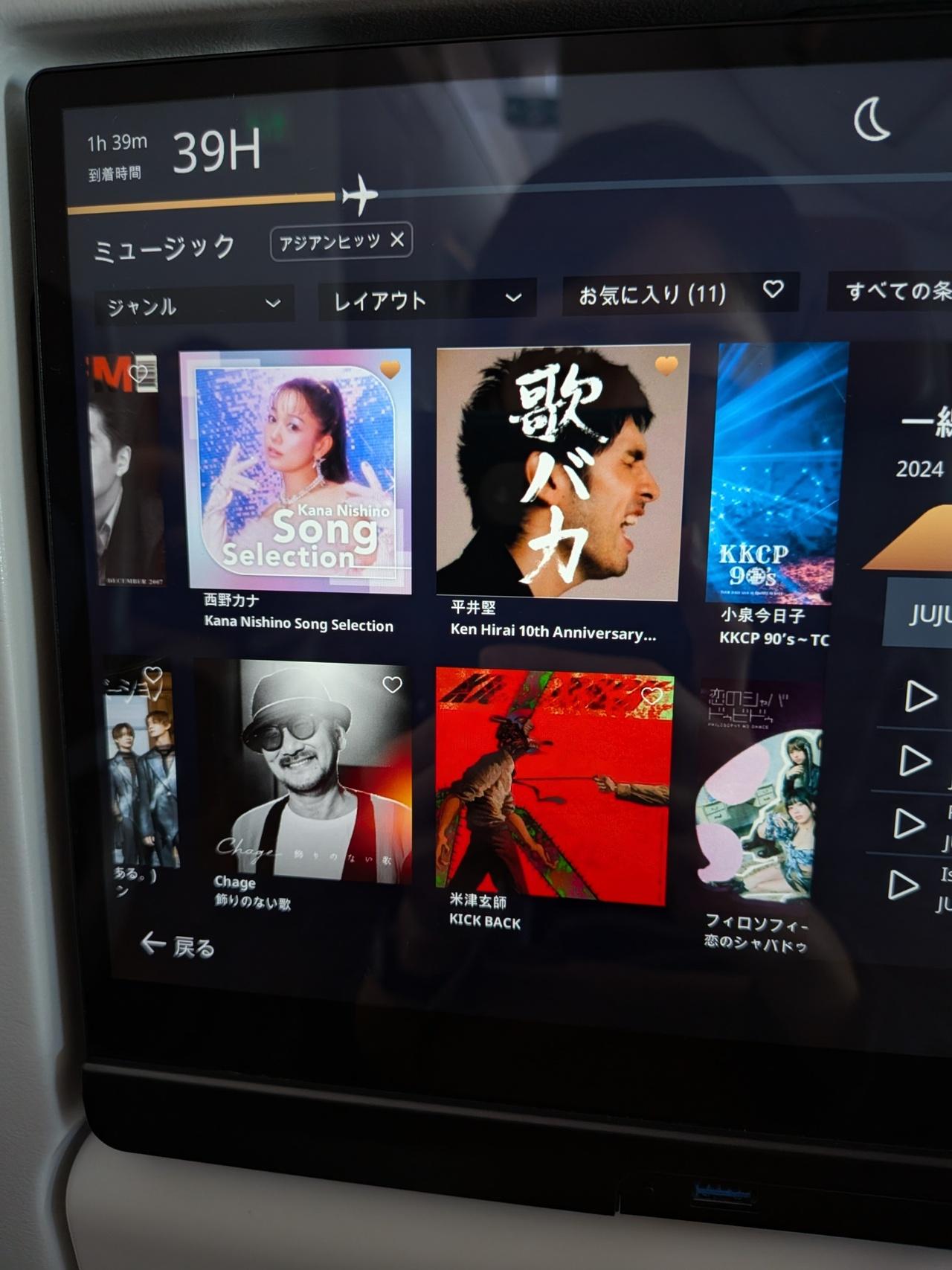 J-POPの人気歌手のアルバムが揃った機内オーディオ。