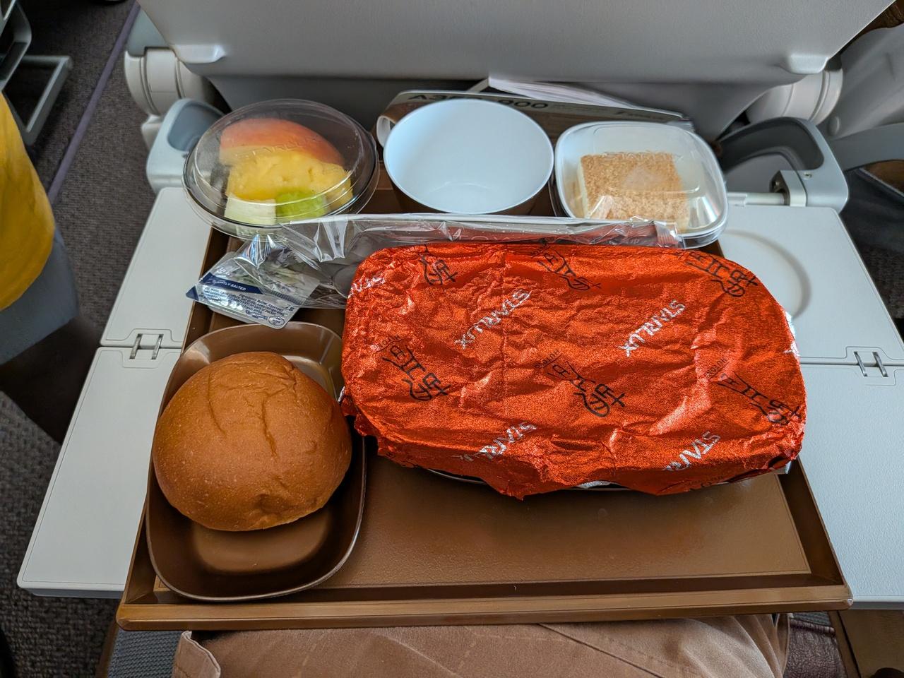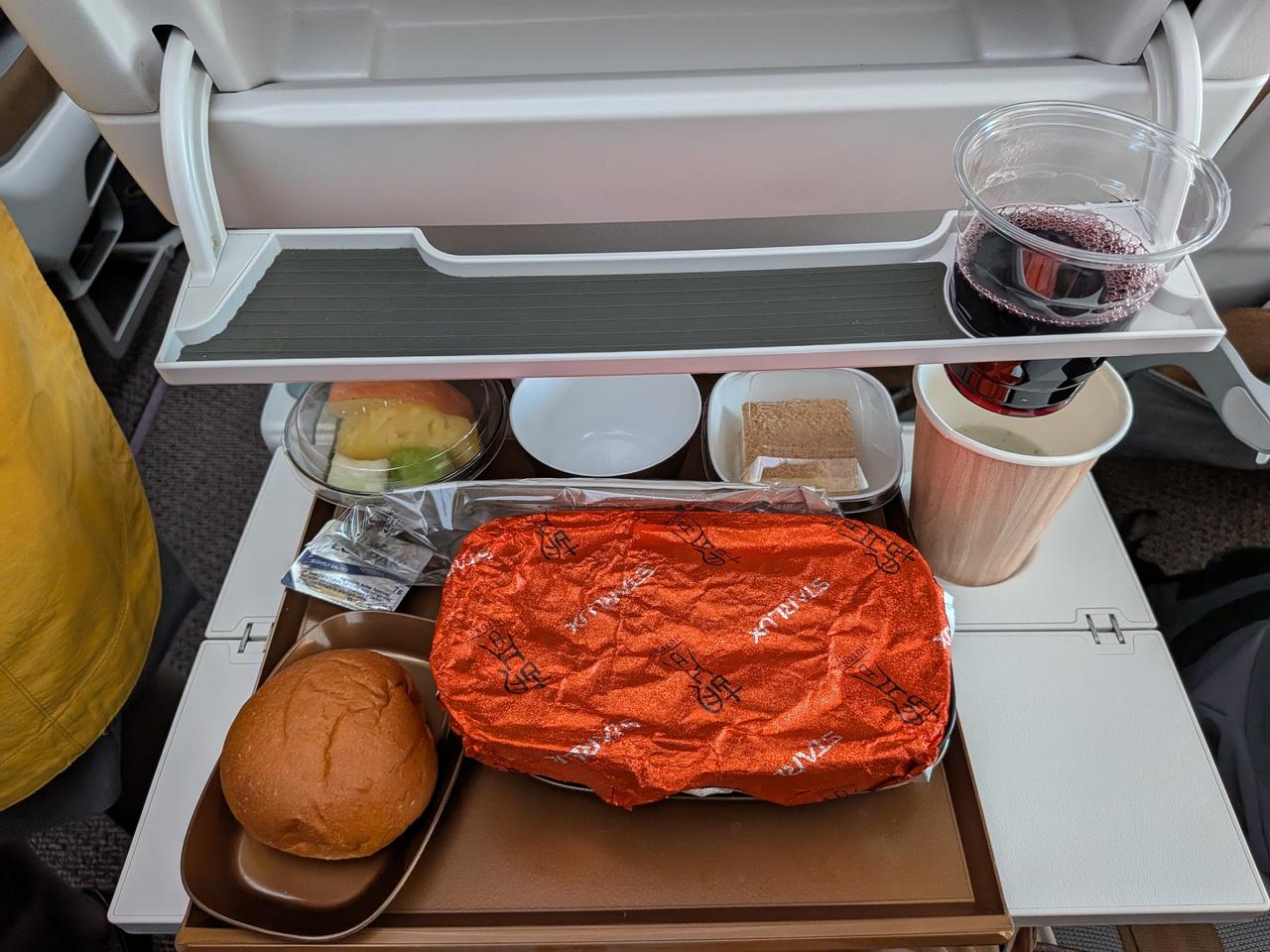 離陸30分後、お待ちかねの機内食が提供されました。