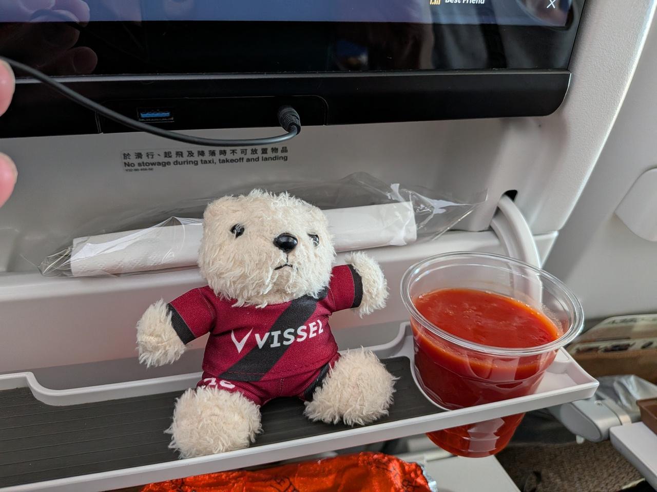 CAさんの勧めに応じて、トマトジュースも注文。